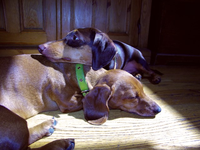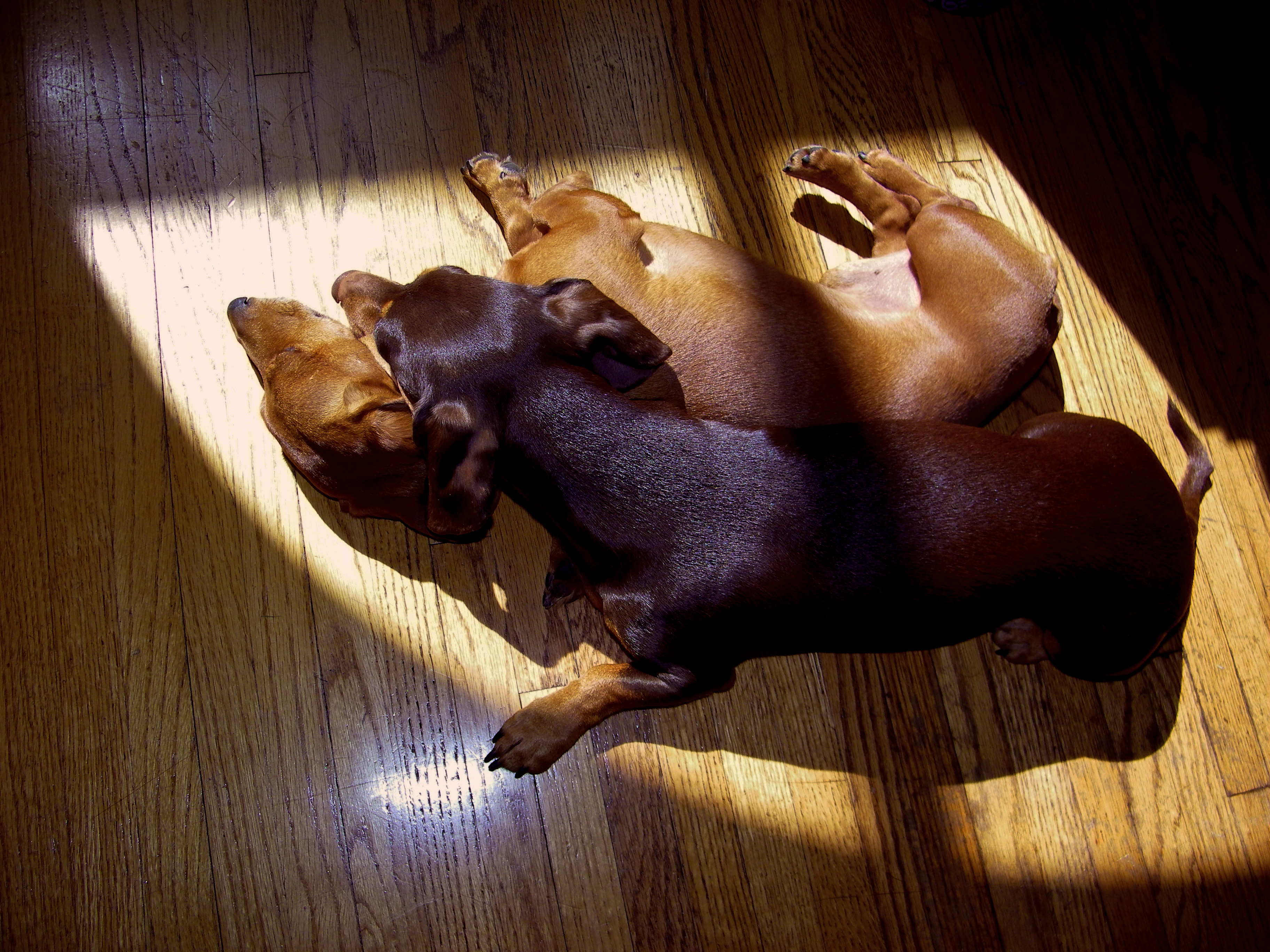 Napoleon Bones-a-parte Don’t-call-me-Dynamite Chu, or Polie to his friends, is a smooth chocolate dachshund with a unique crooked tail. Polie and Rufus have been friends for about five years.