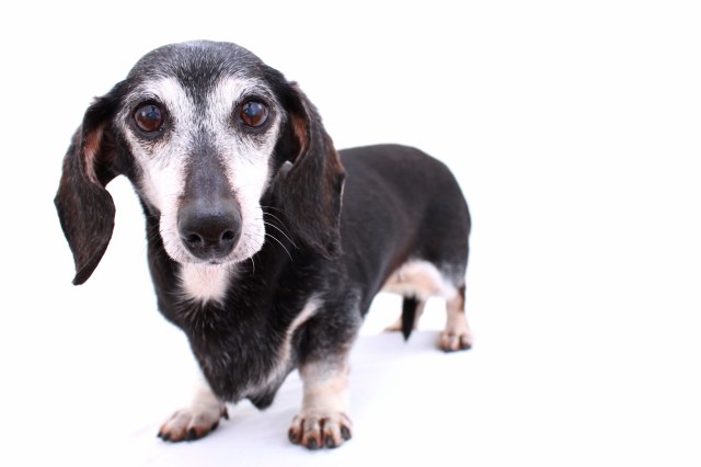 Celebrating our senior doxies this week, I’m thrilled to showcase Daisy. Estimated to be 16 years old, Daisy was rescued last May (2011) from the Baldwin Park Animal Shelter. I love her white raccoon face.