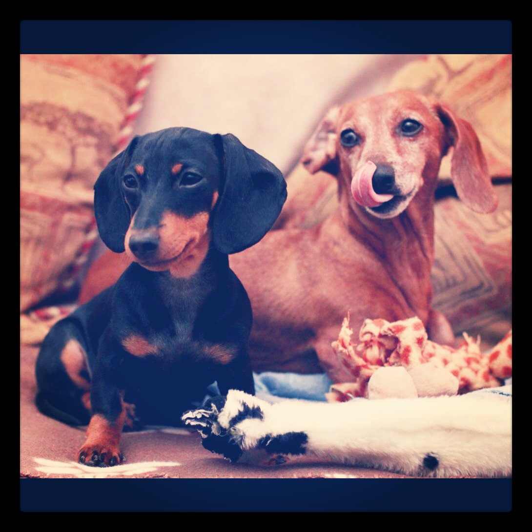 Lazy days of Spring. Emily and Rufus lounging on the couch, one of their favorite places to hang and play with their toys.