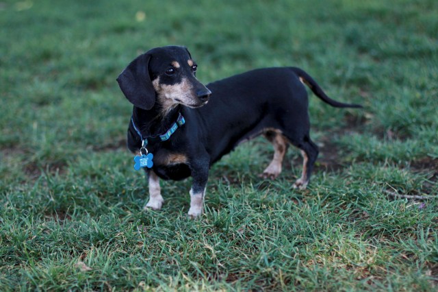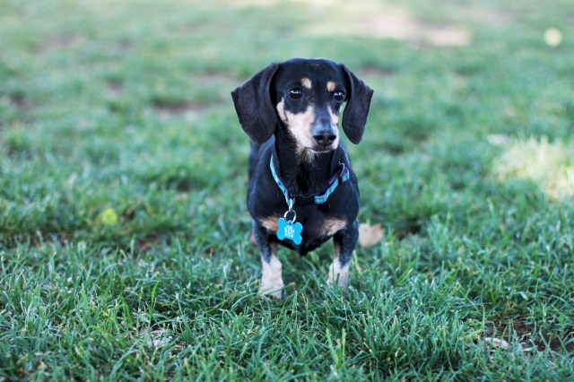It’s double doxie rescue week. Look at this petite beauty. Dixie the miniature dachshund is guesstimated to be about 8. Her shiny black and tan coat is sprinkled with grey, and her movement through the dog park today reflected confidence and experience. Her adoption is being spearheaded by Dachshund Rescue & Placement. Interested persons should complete an on-line application. To see a special Flickr slideshow click here. Help this doxie find her forever home by sharing with your network.
