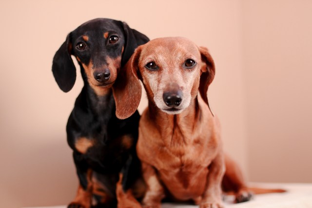 I actually have twin doxies but are fraternal, so they have the same face features but are different colors and they were born on Christmas Eve. The doxies before Mookie and Niko, were cousins and different – black/tan and red. Niko was a cream but now at 8-1/2 is like a dark sandy color. Mookie who is 1 minute older was a red but now is like a coppery color.