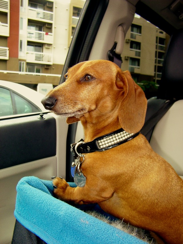 I think dogs in general like going for rides in cars, and I also think some doxies (especially those that don’t suffer from car sickness) really enjoy seeing the world for an elevated perspective. Dachshunds are smart dogs with strong noses and a drive about town with the window opened or cracked seems to really stimulate their senses. I know Rufus and Emily jump at the opportunity to go for a ride with dad, and I’m always happy to have them along.