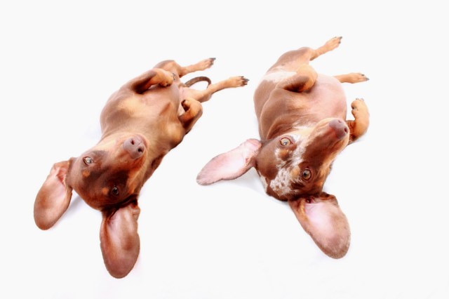 Laci and Max demonstrate one of the dachshund’s favorite things: belly rubs. Beautiful models. Have a great day!