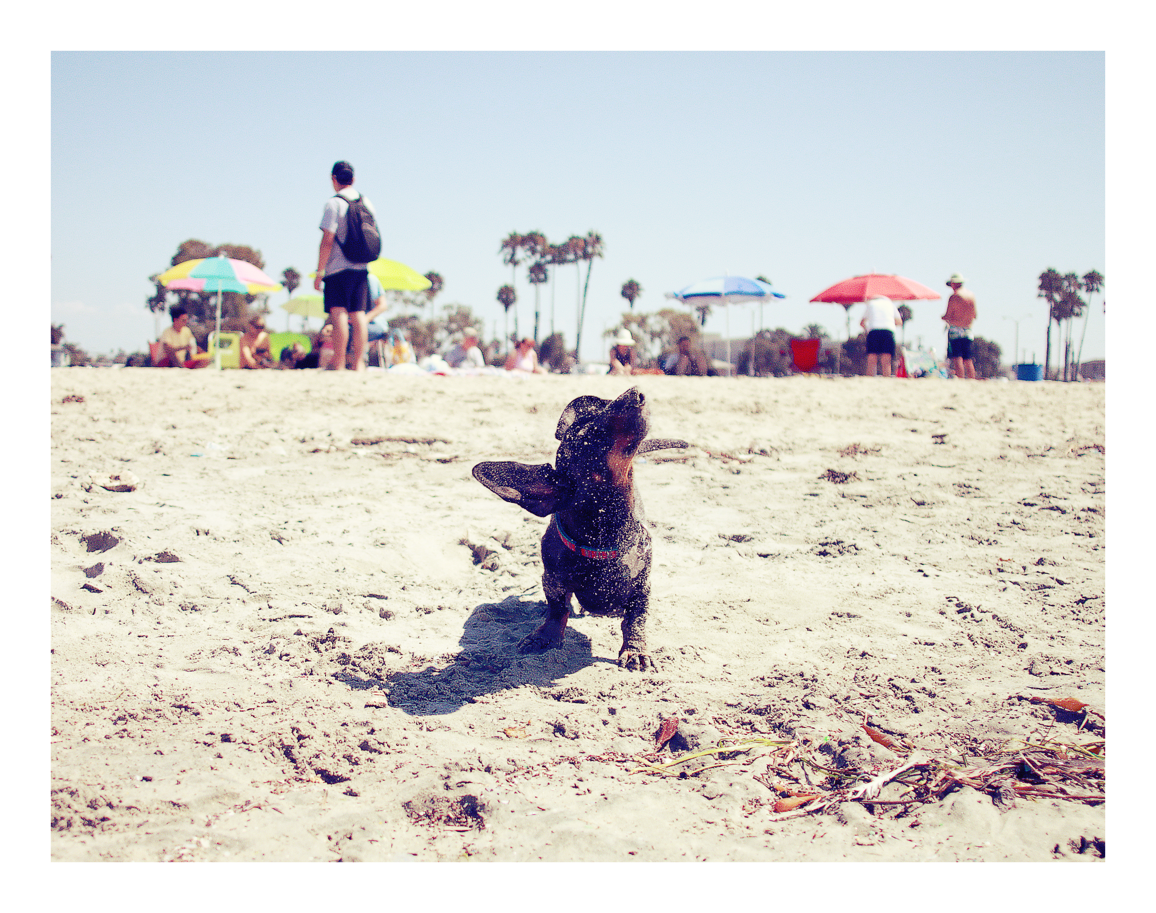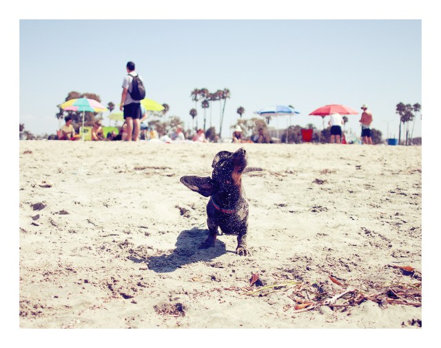 Doxie shaking the sand off. Photo by: Johnny Ortez-Tibbels