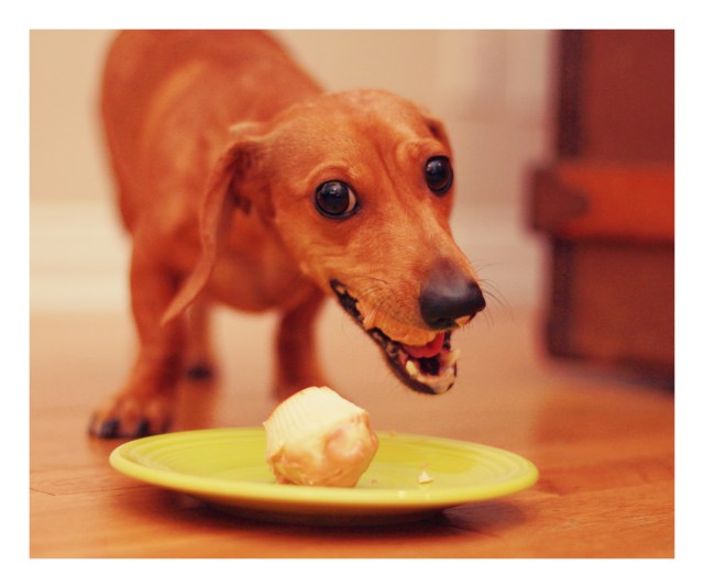 We have been celebrating Rufus’ birthday all week long and one of his gifts was High Hopes Celebration Cupcakes. I baked and served, and the pups loved them. Probably none more so than Milo, as evident by the photos. Dachshunds can be total pigs given the opportunity. To learn more about High Hope Cupcakes and see a slideshow including Rufus and Emily pigging out, click here.