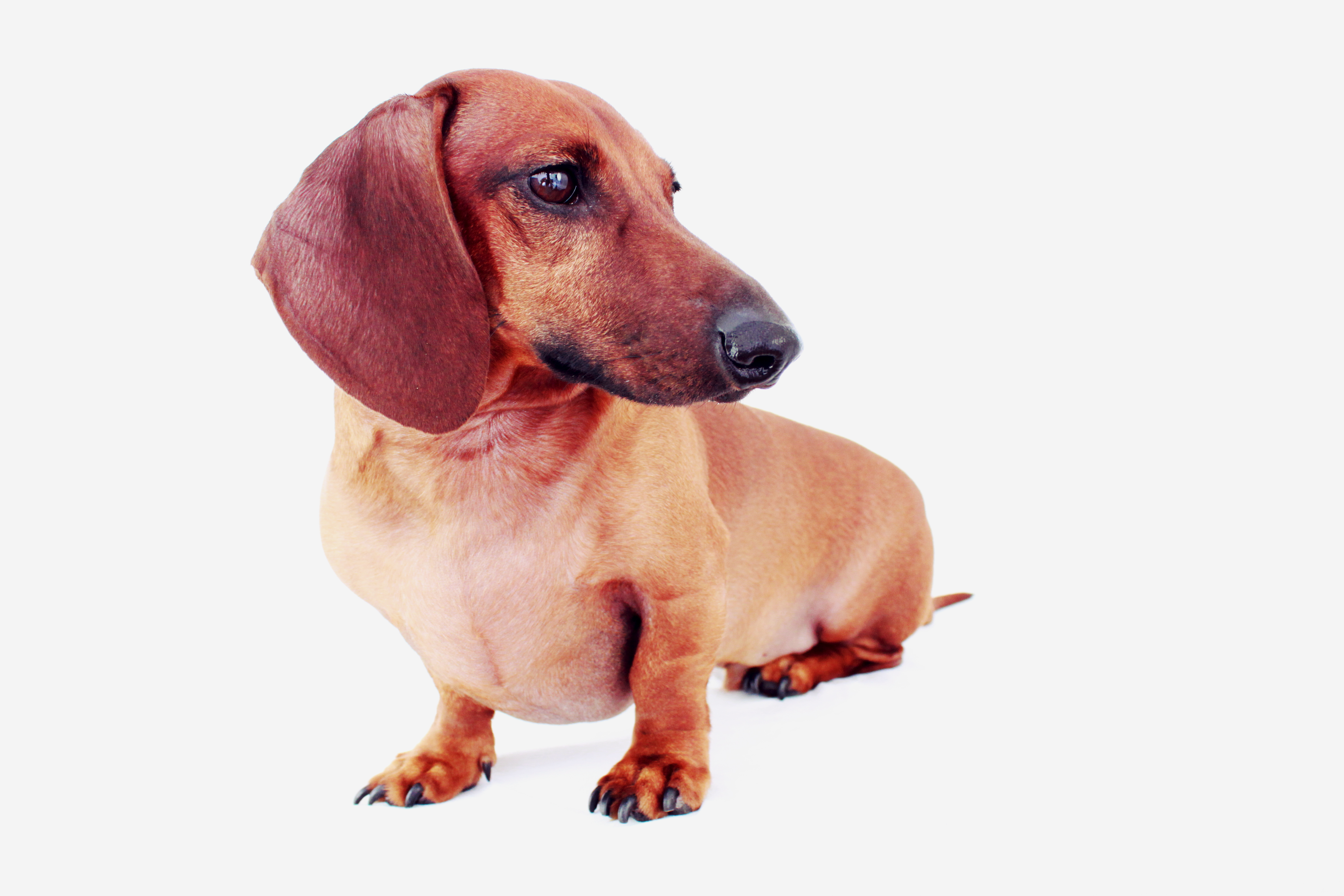 What I like in general about photographing the dachshund is its distinctive form, and Wall-e gave me good form. I like the outline of the dachshund head, the silhouette of the long body, the big brown eyes, the floppy ears, the oversized paws, the barrel chest, the pronounced snout and the vibrant pink tongue – which makes an appearance occasionally when photographing doxies. Wall-e is a great example of a red smooth dachshund.