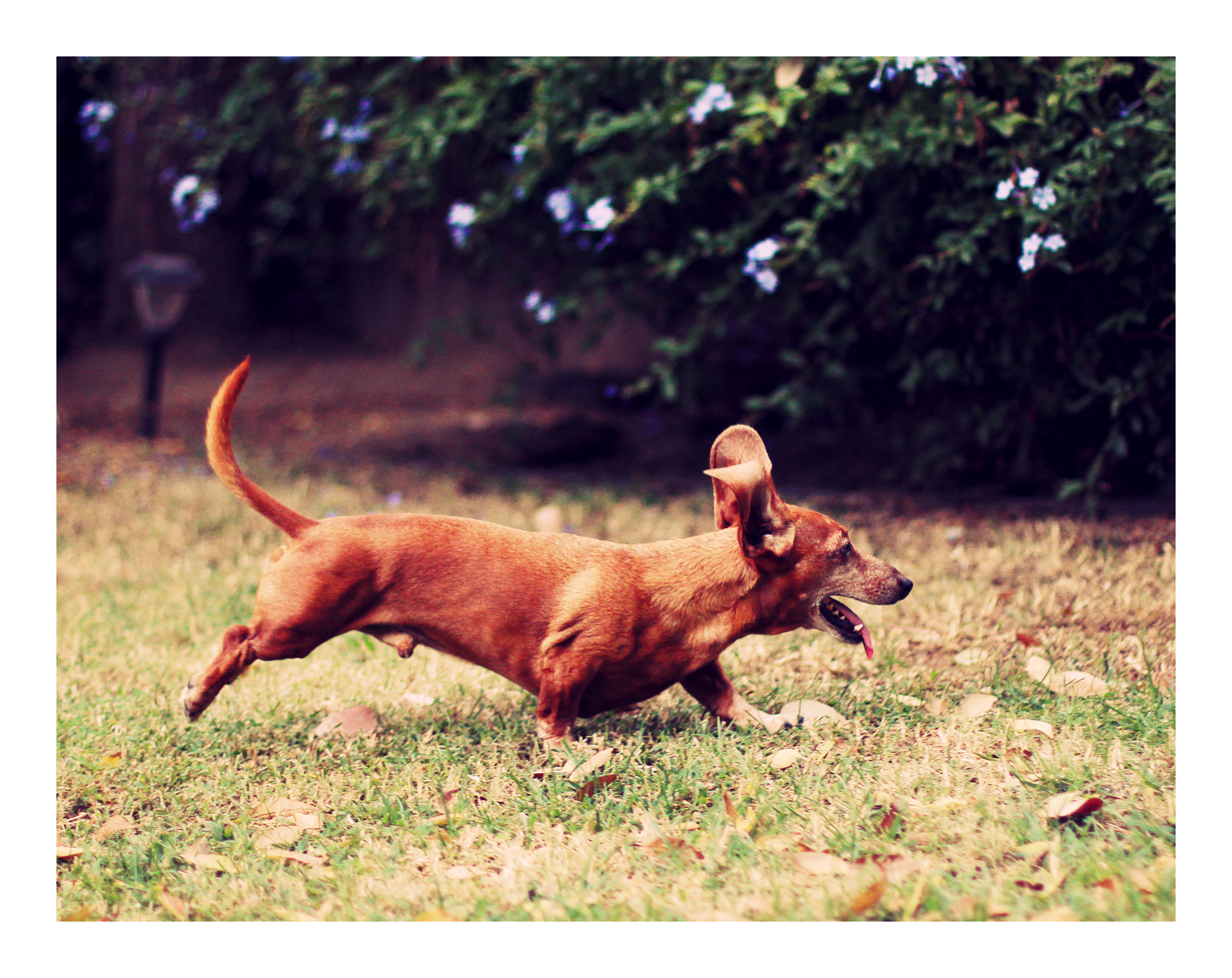 Rufus’ exercise regimen consists of many lapses around the backyard chasing squirrels. I love watching his ears flap in the wind.