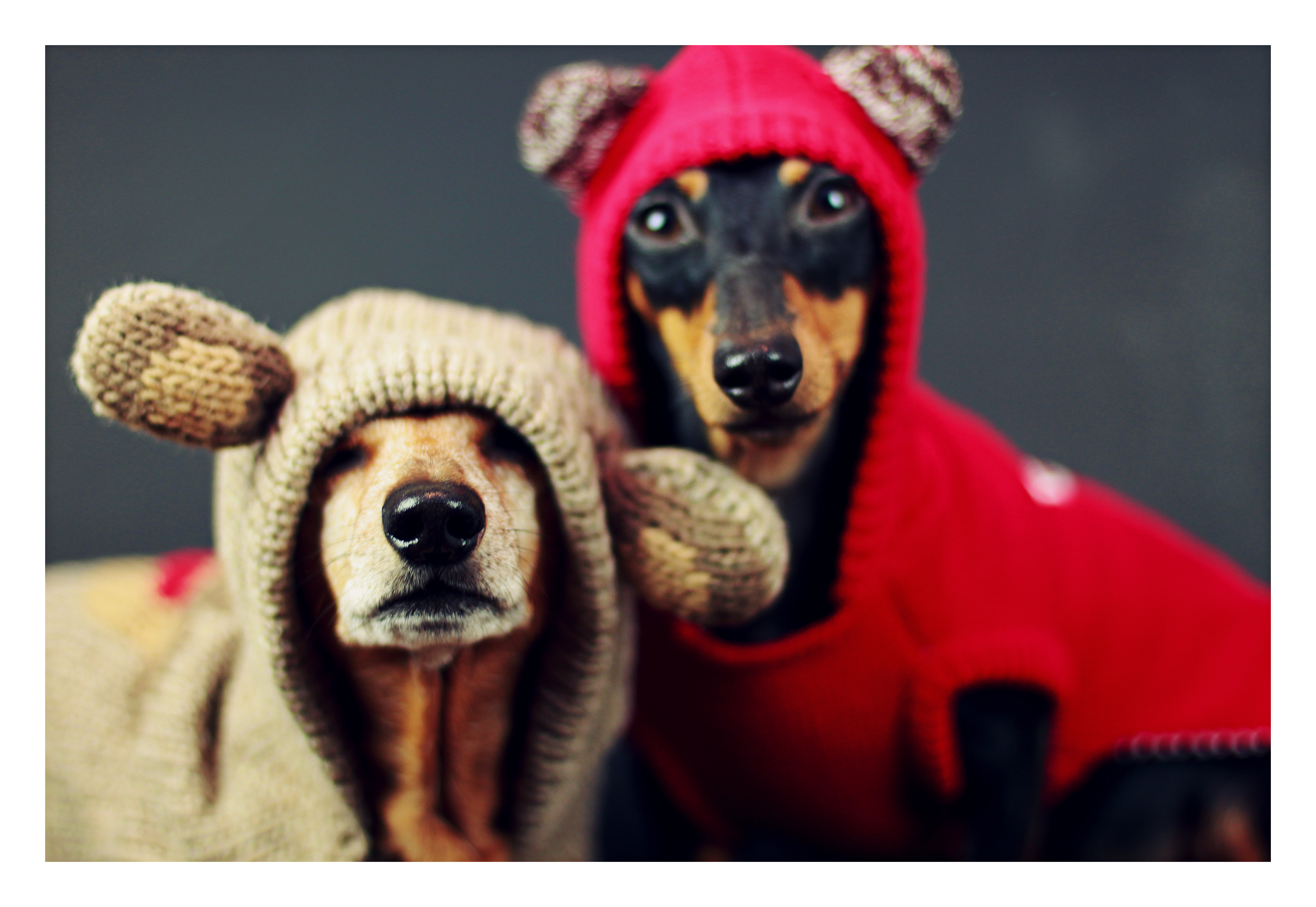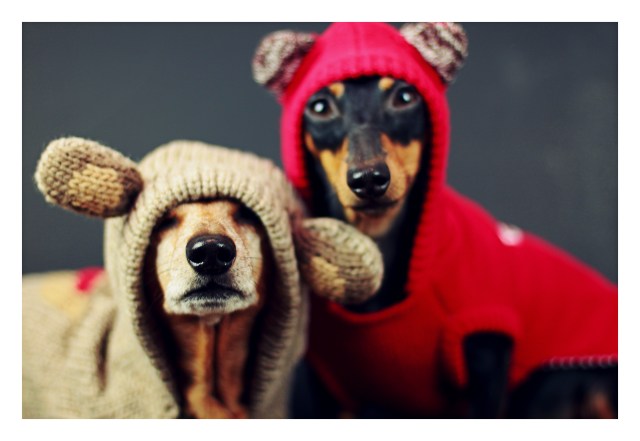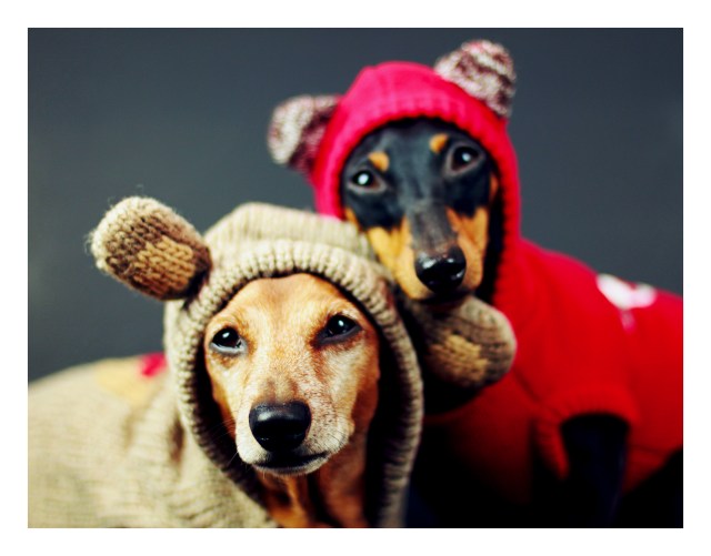 Well I guess it was pretty predictable that today’s post (or a future post) would feature both Rufus and Emily in their monkey ear sweaters together. The top photo with Rufus’ black button nose makes me smile big. Have a great day!