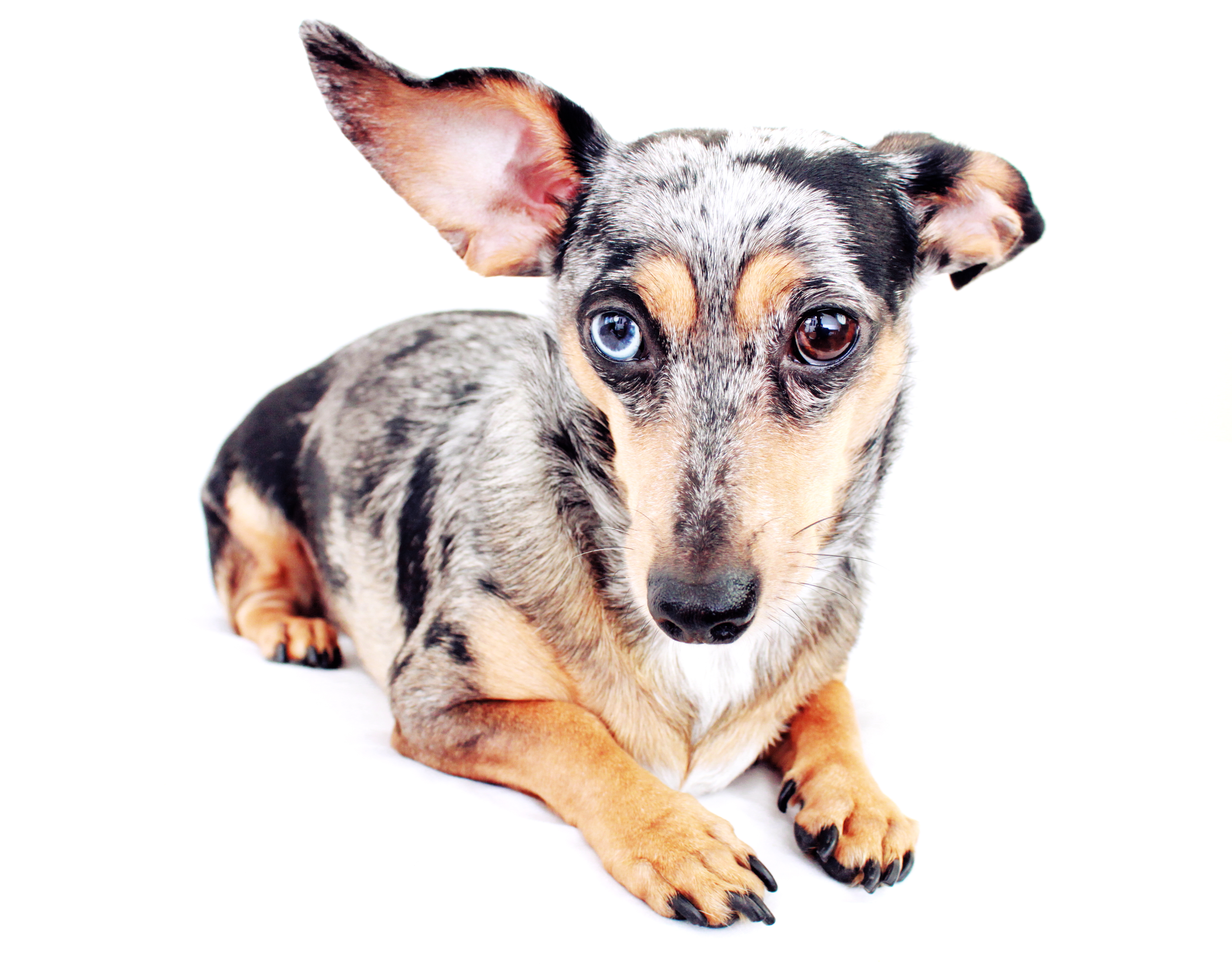 Meet the smooth black and tan dapple dachshund Bacon. This pup’s expressive ears keep me smiling along with his wonderfully beautiful mismatched eyes. Make it a fantastic day!