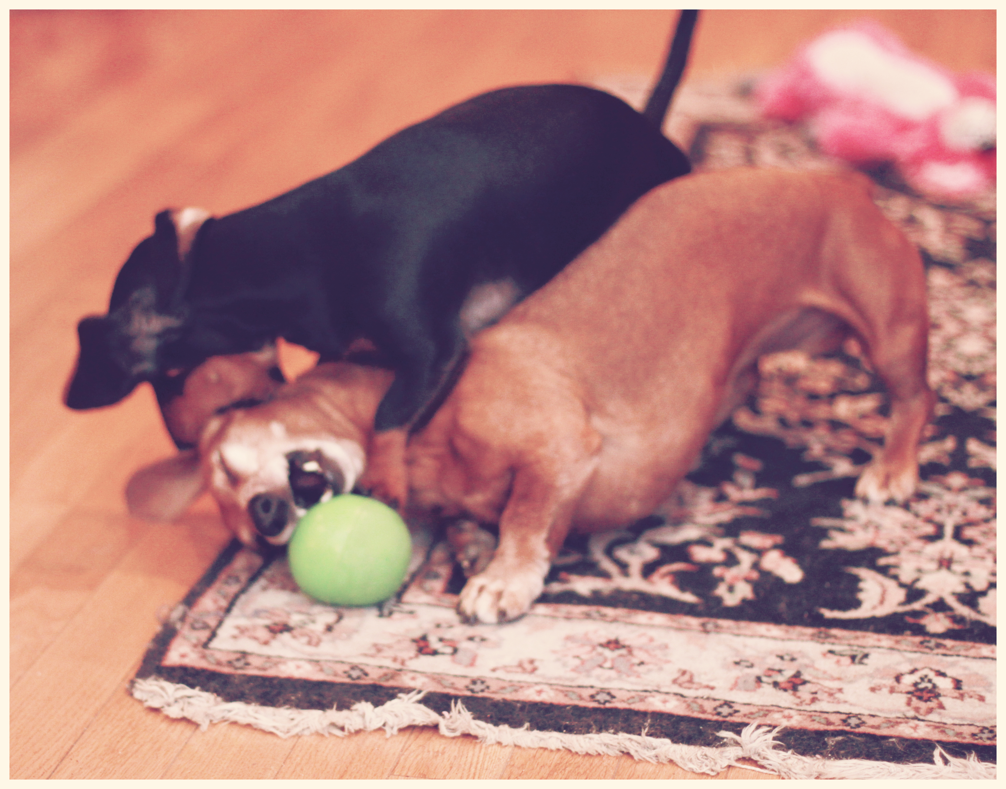 We are completing our first week sans Milo and although we miss him, it truly warms the heart to see my two doxies – Rufus and Emily, really solidify their bond these last few days. It is very entertaining to watch them chase each other all around the house only stopping to wrestle or play tug-of-war with a toy. Life with dachshunds is good.