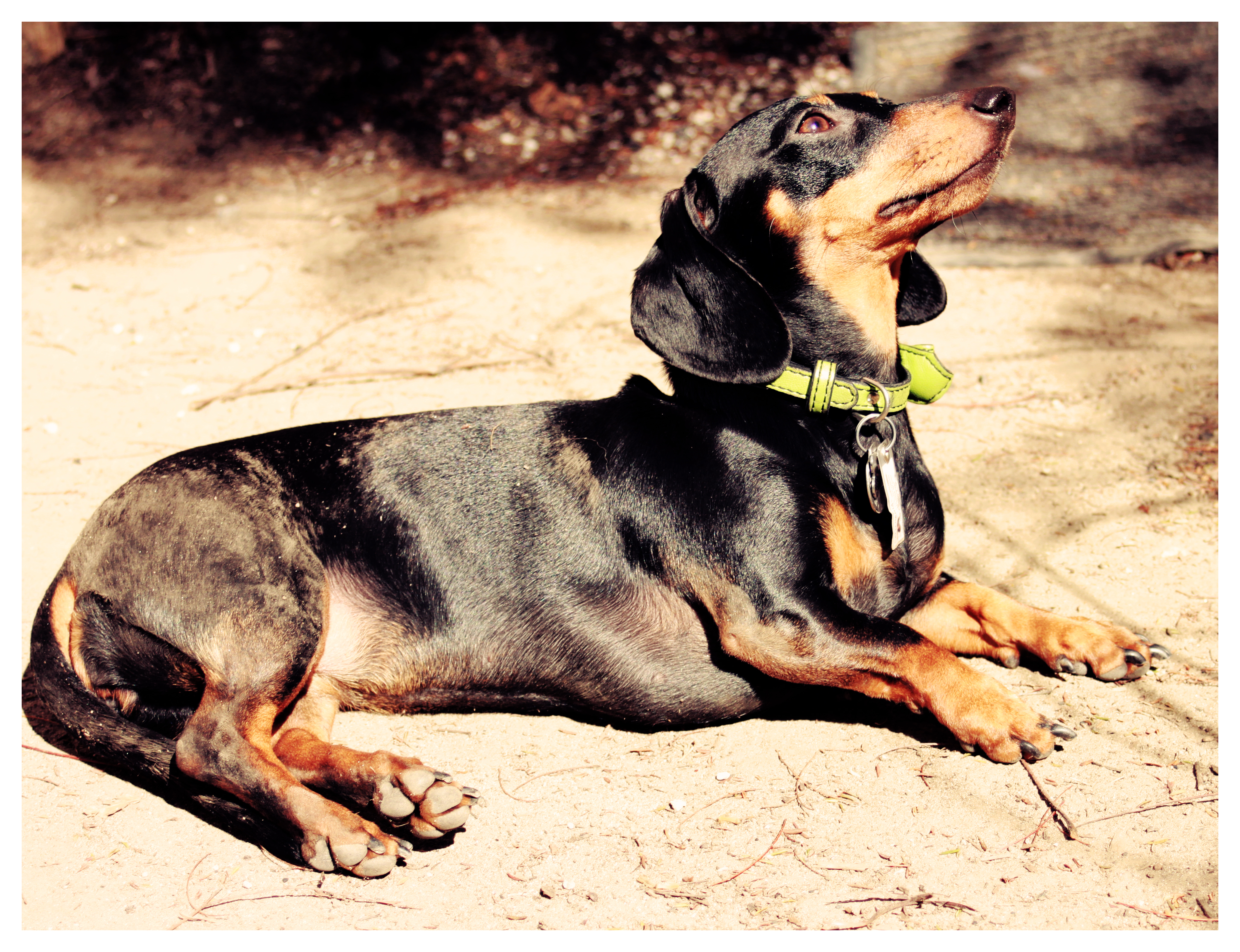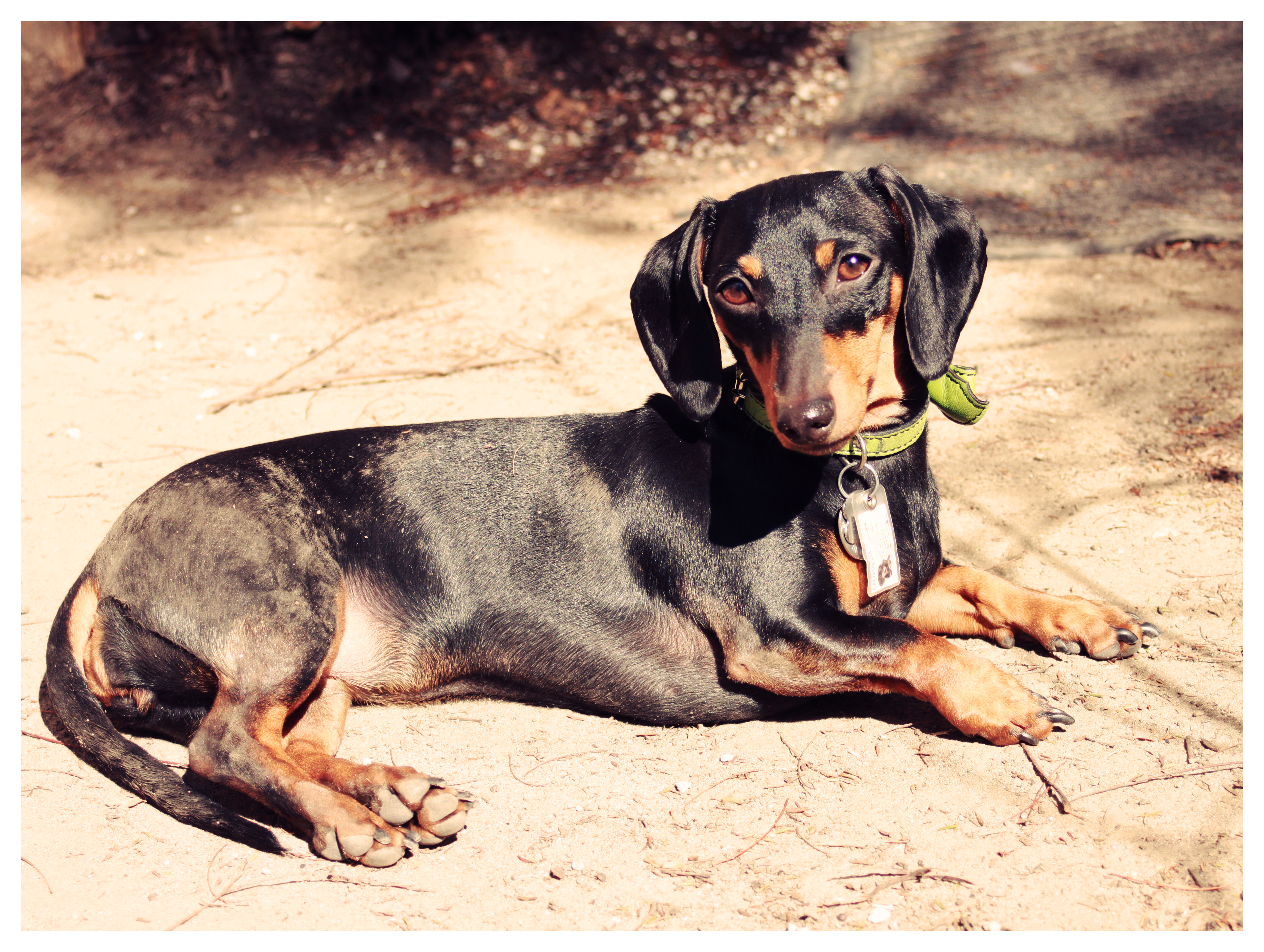 Not only does Emily enjoy sunbathing, she especially likes to do it while rolling around in the dirt. She’s like a pig in mud; my little piggy. How about yours?!
