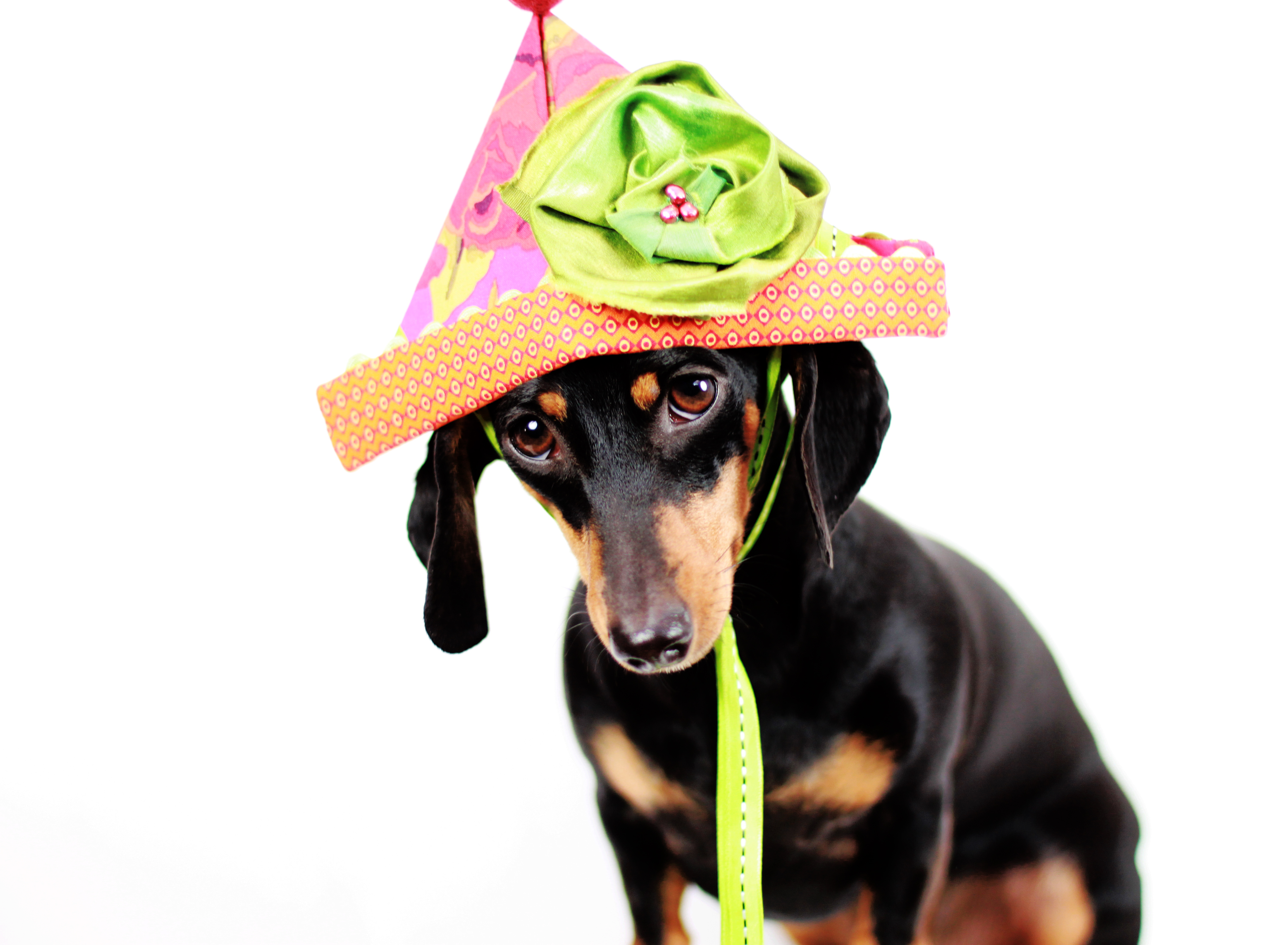 Today’s photos are my interpretation of dachshund Easter bonnets. They’re actually Happy Hound Party Hats made by Kalyxcraftopia. Special thanks to our friend Suzy for recommending the hats and website. As many of you know from previous posts, I like a hound in a hat, but these hats are far superior to any others I have bought. The quality and attention to detail is amazingly good and far less expensive.  We got ours just in time for Easter. Best of all, the hats are produced by a fellow dachshund human.  I love to support other dachshund enthusiasts when I can.  What do you think!?