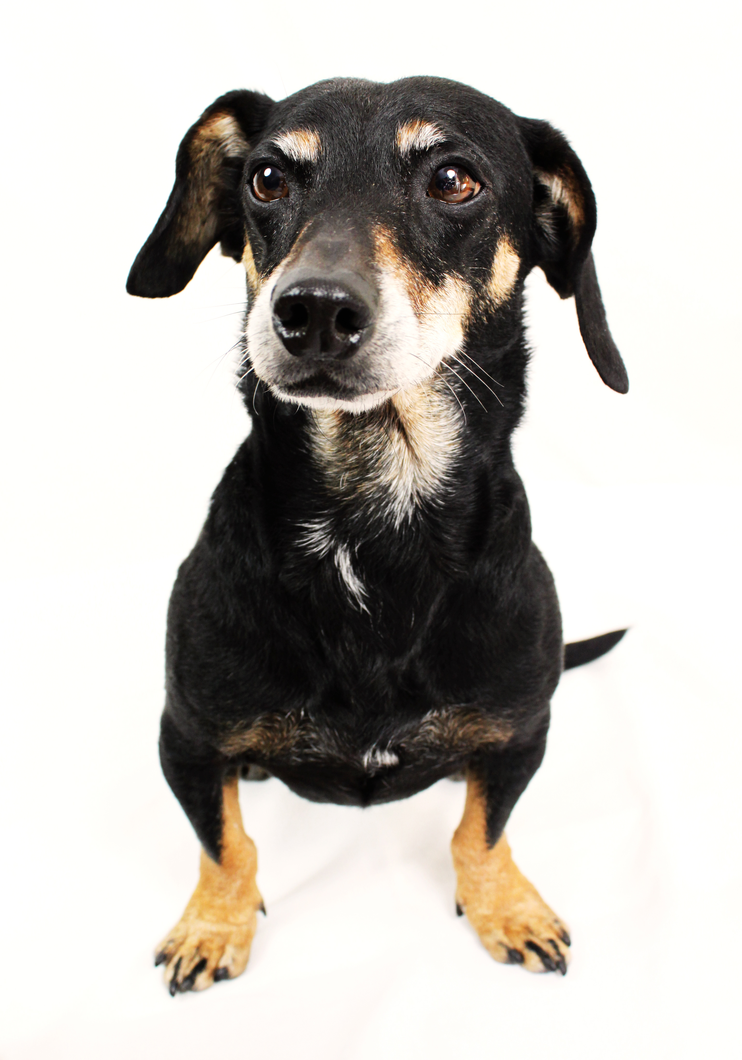 I’m a dachshund photographer and artist. I only photograph dachshunds and use those original images to create photo art that celebrates the dachshund form and personality. However, every artist will make certain concessions from time to time, as I have done. Jake the doxie-mix is one of the few non-purebred dachshunds I have photographed, and not only did I photograph him and his sister Kaia but he is featured on the cover of my book and masthead of my website.