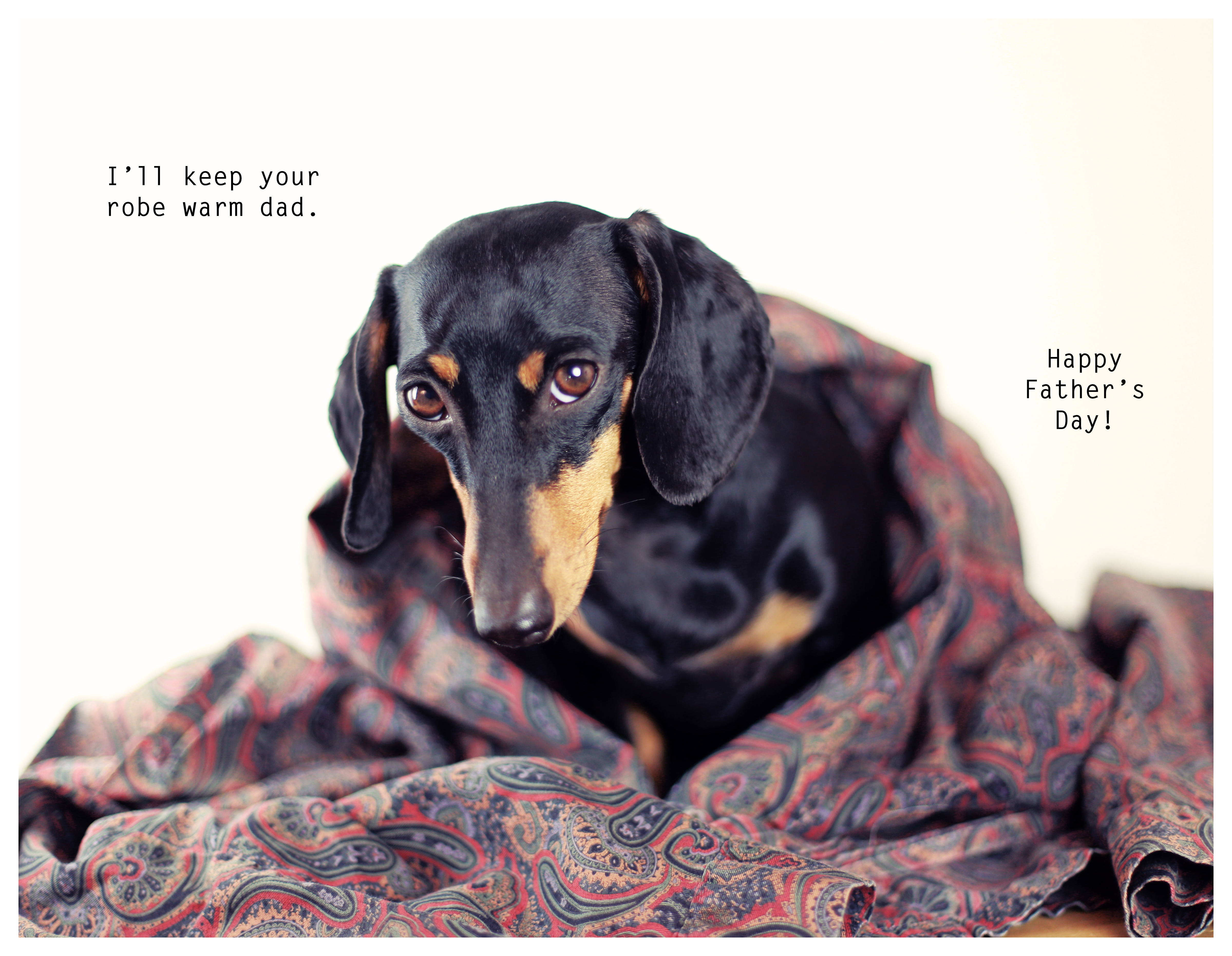 Fathers come in many different forms. We have our biological fathers whom we can thank for our very existence and their DNA. Many of us also have male role models in our lives that nurture us, encourage us, teach us and love us. Today is that day when we acknowledge them all for their contribution to who we are. Lastly, we must not forget all of our doxie daddies. They can’t say it with words, but if they could, they might say something like this… presenting Rufus and Emily’s 2013 Father’s Day cards. Happy Father’s Day to all!