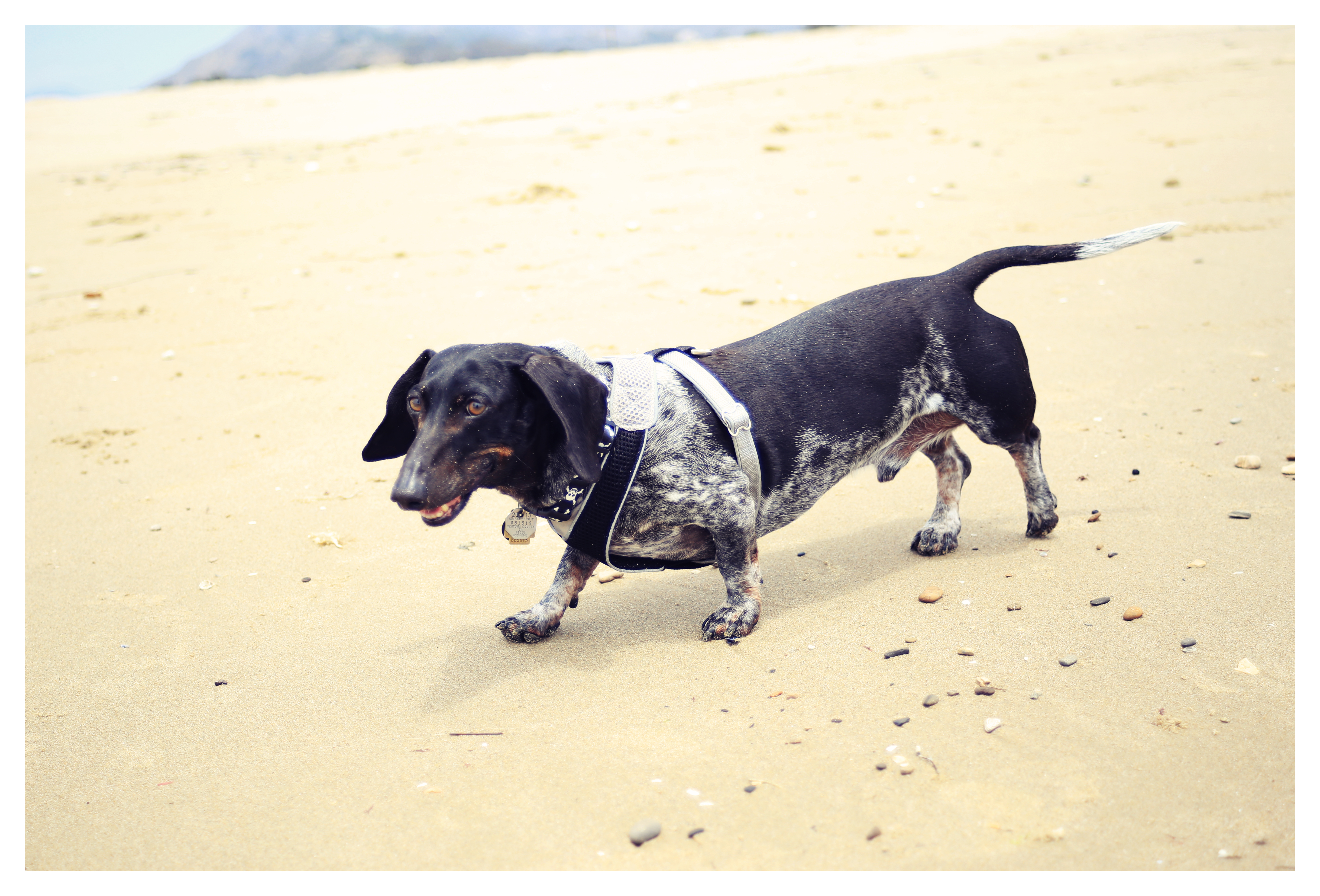 And he is no Monkee. Yesterday we explored a new patch of beach – Surfers’ Point, and made a new dachshund friend: Davy Jones, the smooth black and tan dapple. The cute and sometime cantankerous rescue got along great with my two – which somewhat surprised Davy’s human. I continue to assert that many dachshunds like (or at least tolerate) their own breed more than any other. I’m not here to explain why, but simply to testify to what I have witnessed time and time again. The beach excursion was a nice preamble to today’s 4th of July celebrations.