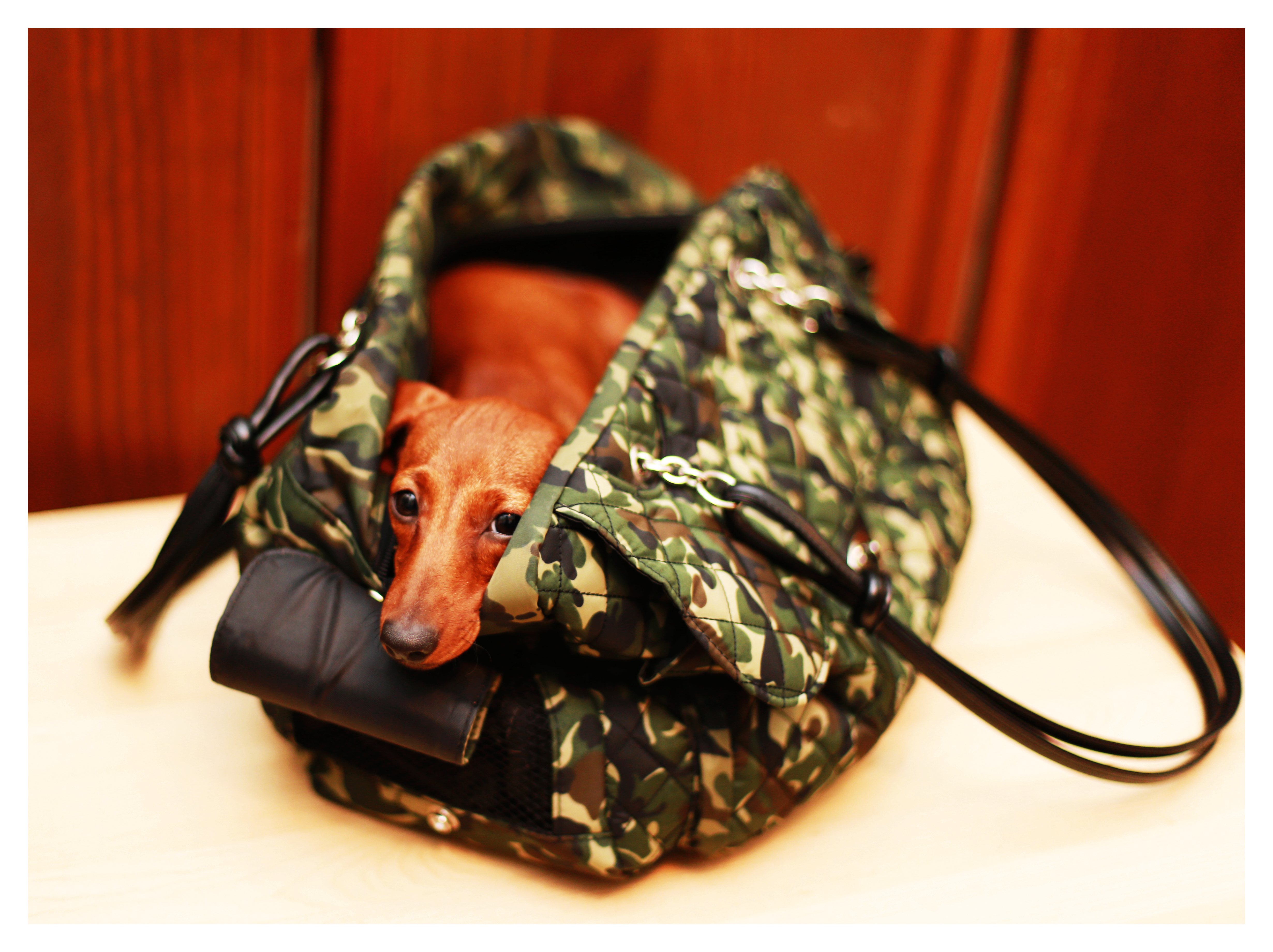 Oh my goodness, Lily is awesome. I’m big advocate that puppies should not be left home alone – you (as the human) have to either stay home with them OR you take them with you. For the last two days I had to run errands and get some stuff done. Rufus and Emily are trained and trusted so they can be left alone – especially since they have each other, but the unpredictable puppy must be supervised so… I just took her along which is great for her socialization. I’m also a big proponent of bag training dachshunds. I’m a fan of the breed because they’re so compact and portable. Rufus and Emily were both bag trained at an early age (puppyhood) and when I grab their bag today they often race to be the first one in it, because they associate the bag with going on an adventure. I’m happy to say Lily has taken to the bag training like a pro, and at 4 pounds and a few ounces (compared to Rufus and Emily’s solid 11 pounds) she’s easy to carry. She doesn’t bark and appears to be very comfortable in the bag. The bag is often an extension of the crate and Lily fortunately likes both.