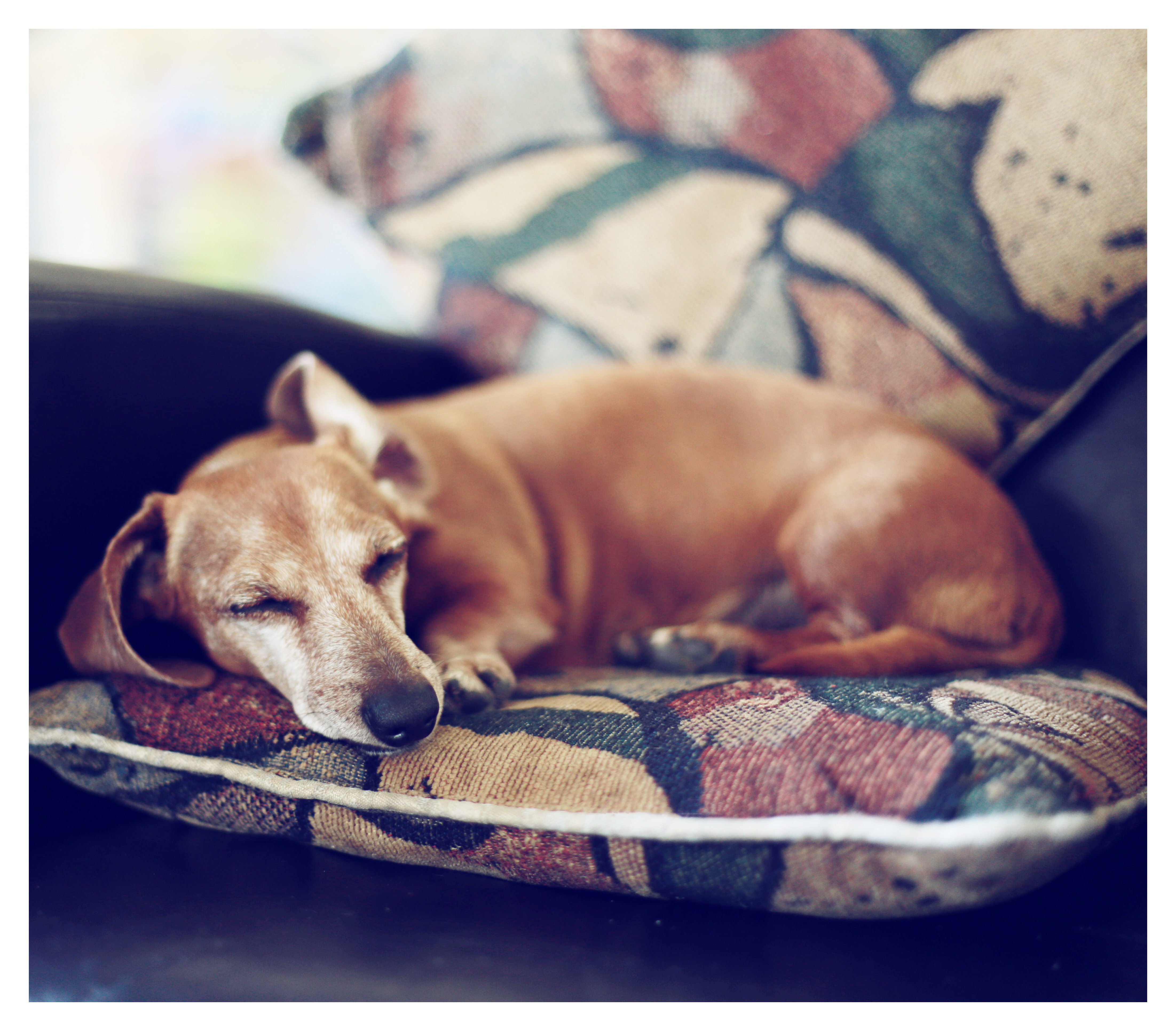 Emily is posing for the camera! That is so sweet. Looking right at the camera too.She is so feminine! Rufus, what can I say? He is dignified yet not elderly. He looks like he is having a relaxing dream.