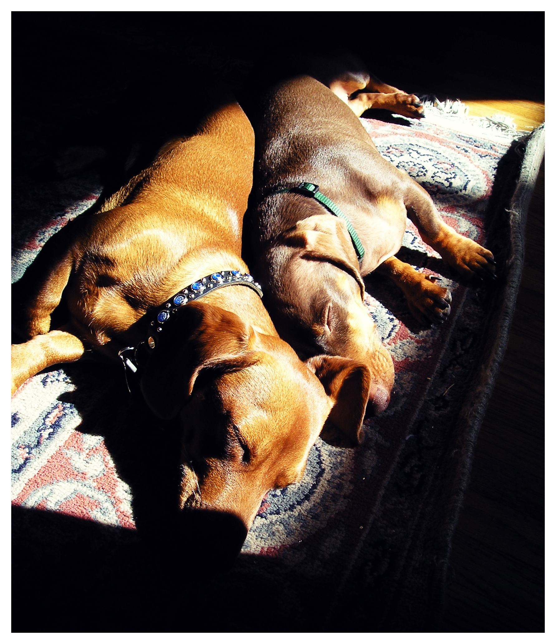 Continuing the celebration of all things Rufus we searched our archives for a few favorites. These are of Rufus and one is best buds (and first friends) Benny. Notice Rufus doesn’t have much grey yet here. The photos are from 2006 and 2008. Dachshunds do love to look for those patches of sun – wherever they can find it. Proof is in the pictures. Happy Throwback Thursday friends.