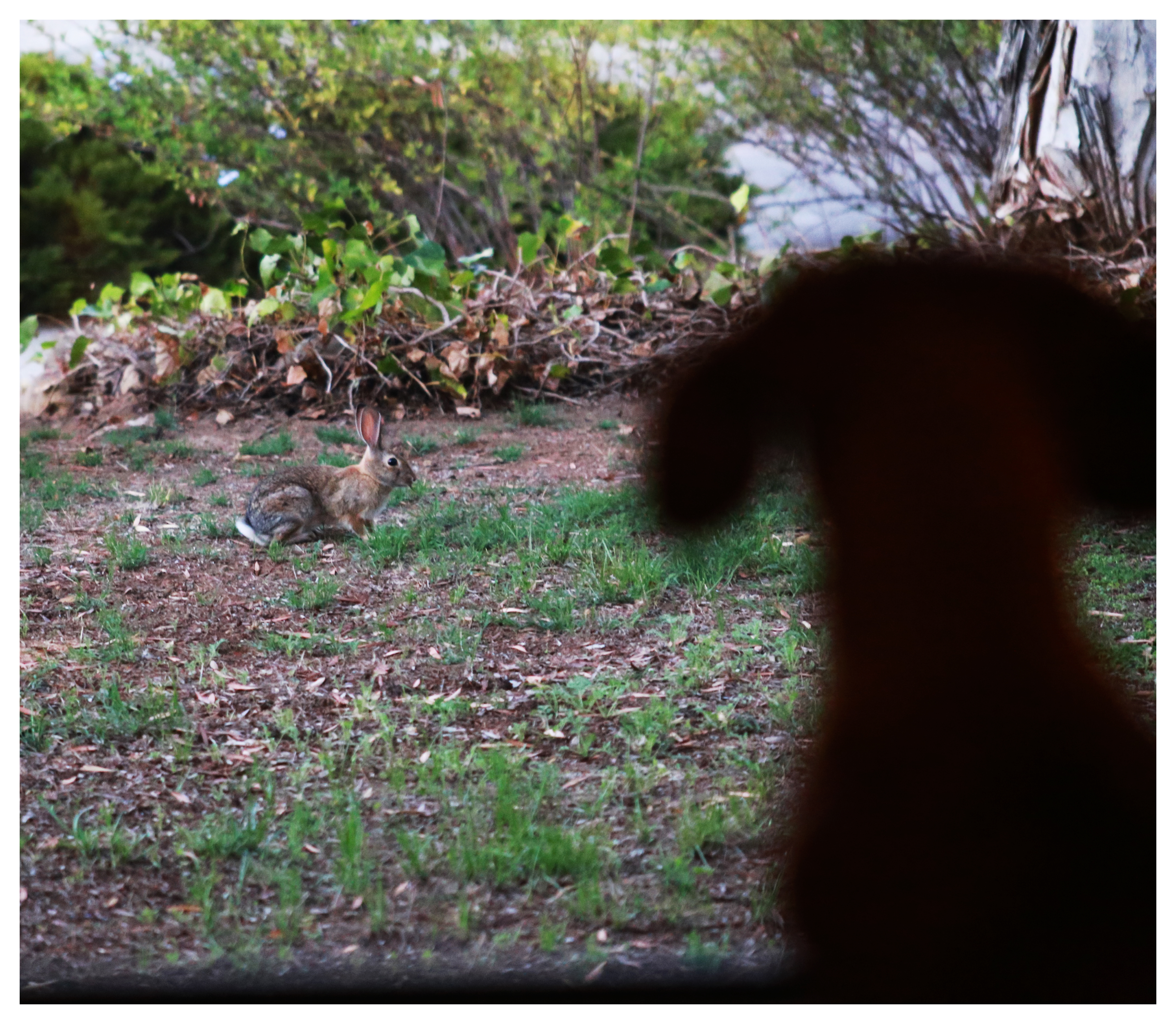 what a great shot!! My Dori is fascinated with bunnies. I do have to report that she has caught & killed one..very sad for this human to witness, but she was just doing what is instinct so you cannot get mad at her. She is one doxie with a very strong hunting instinct.