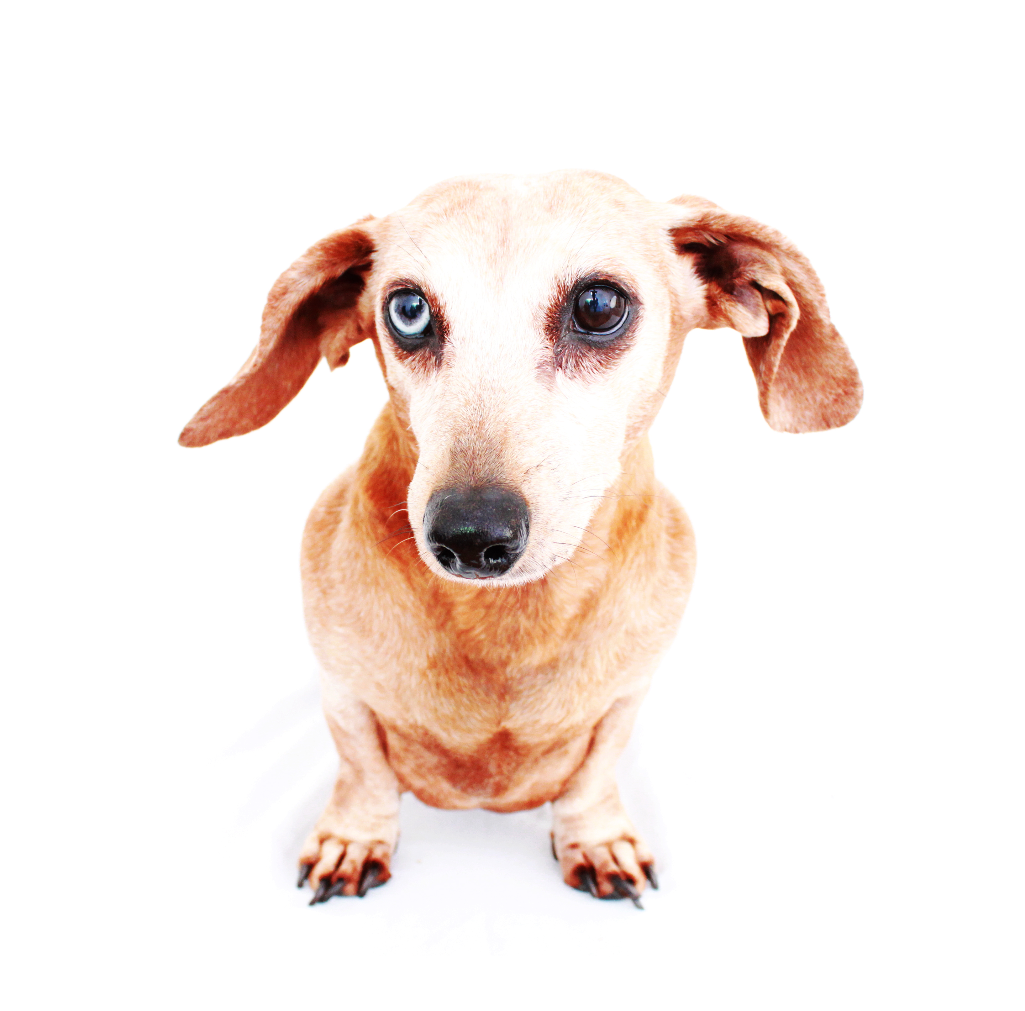 Our friend Bailey, the red smooth dapple dachshund, turned 12 this past Saturday and we wanted to wish her a very Happy Belated Birthday! I love a white face dachshund. I think it’s an accomplishment and testament for both human and dachshund of a long-lived life. Bailey may you live another 12 years. I pick the top photo, because I think the key to a long and happy life is not to take any of it too serious, as Bailey so politely reminds us with her fun expression. The other photos are just Bailey serving up pure dachshund cuteness. I’m sorry our tribute is a little late, but we hope it was a great one. Bailey and her pack mate, Onslow, are featured in our book 102 Dachshunds. Get your autographed copy today if you don’t already have yours.