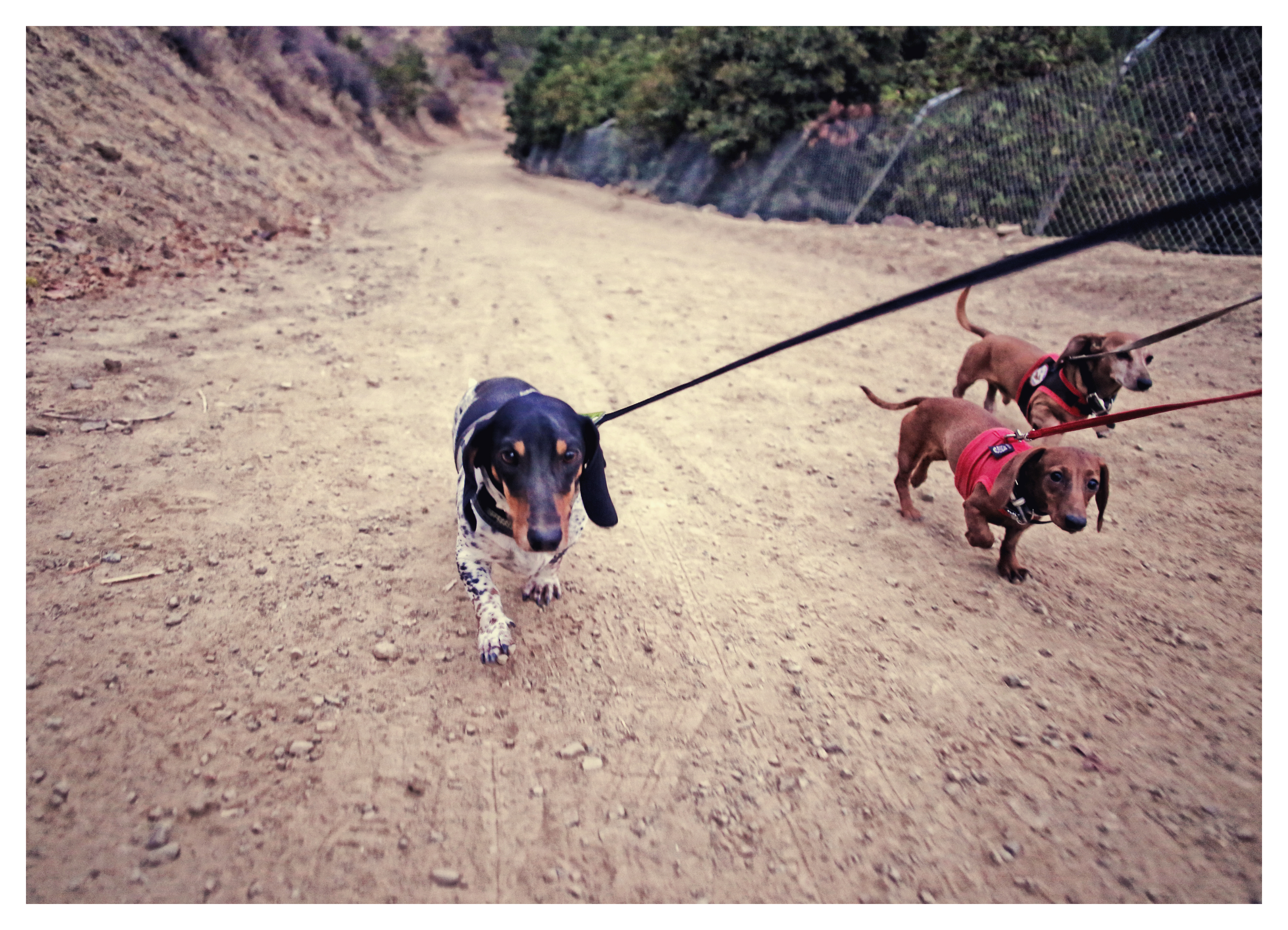 A lot of folks were giving us pats on back for conquering the trail together, but in full disclosure I want to everyone to know I only recommend hiking with multiple dachshunds by those experienced doxie-handlers. I’ve been hiking with my dachshunds for the last 5 years. My doxie pack and I have hiked this specific trail 32 times in the last 54 days. I have an established relationship with Lucy and Theo (the two guest doxies on our hike), and I only visit the trail during non-peak times to avoid crowds of humans or other dogs. It’s an awesome experience to hike with five dachshunds, but I only do it responsibility and recommend you do the same. Your safety and the safety of your dachshunds should always be your first priority, but with some practice and a little patience, there’s not much you can’t do together.