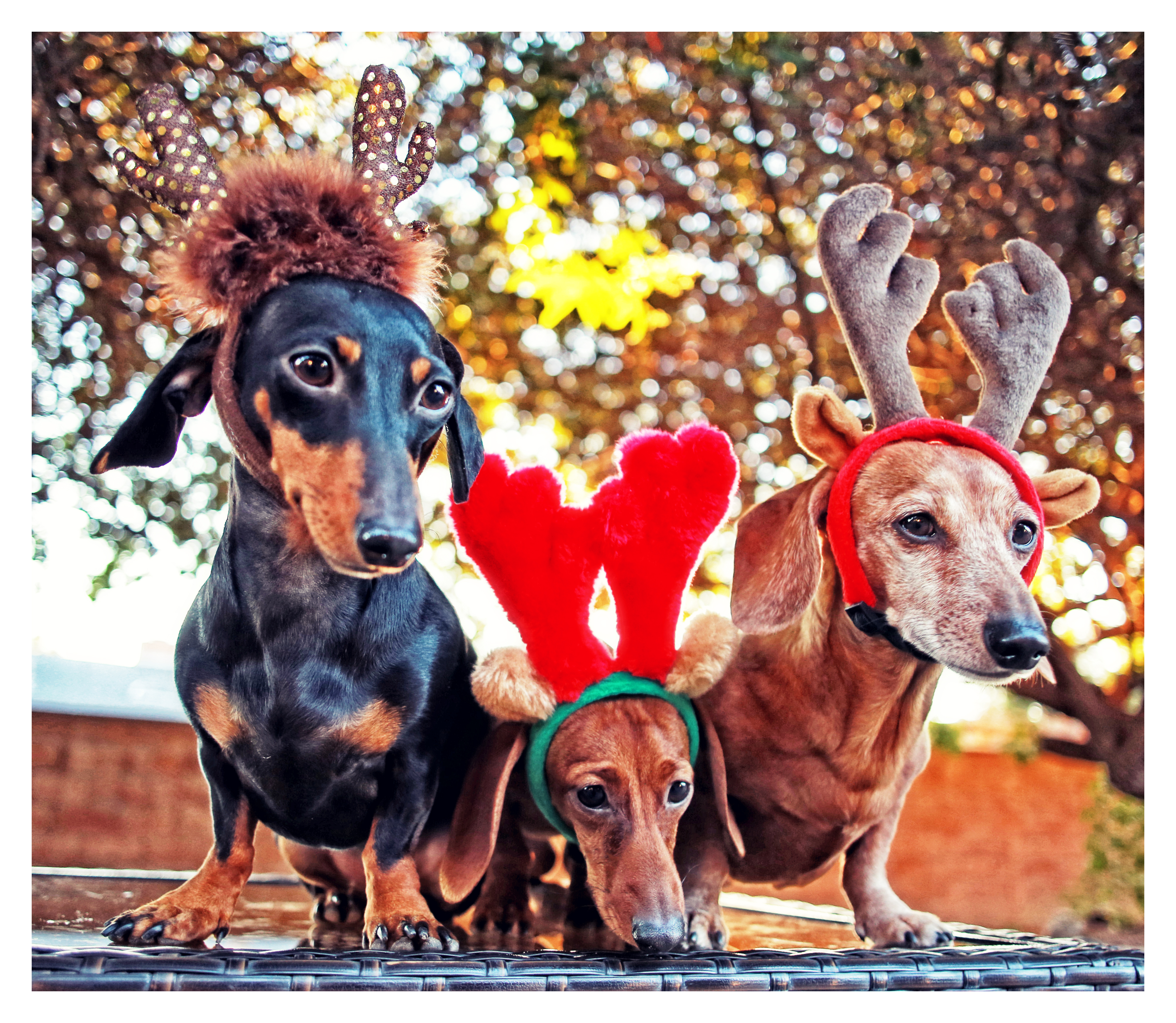 Still trying to decide on our holiday card for 2013 (while I also try to decide if I want to even send them this year). Well whatever decision we arrive at, I’m having fun reviewing our options and sharing them with you. What do you think of these?! Do you think these three doxies could pull Santa’s sled?! Have a wonderful day friends. Only 10 more short days until Christmas. Yippee!