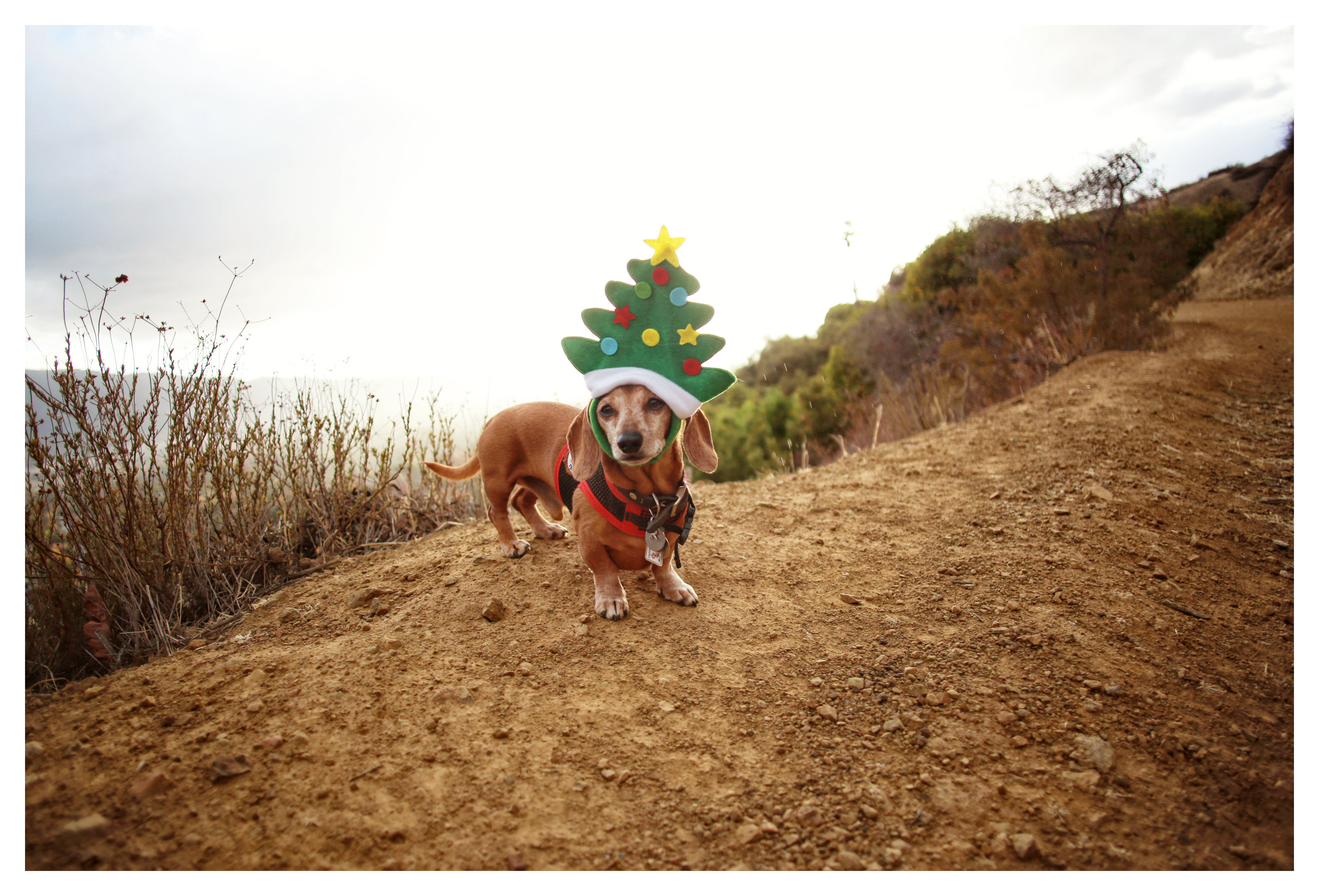 I love our home state of California and today’s featured photos tell you why. Thursday after running some errands, Rufus and I decided to stop by the local beach. With people posting pictures of their dogs covered in snow and with no snow in sight here, we decided to make the most of our own natural resources. On that same day, we also decide to go for a late afternoon hike in the mountain. From the ocean to the mountain all in one day. One person on Facebook said she loved my life to which I replied I wonder what the doxies think of theirs?! Have a wonderful doxie day friends for you and your dachshunds.