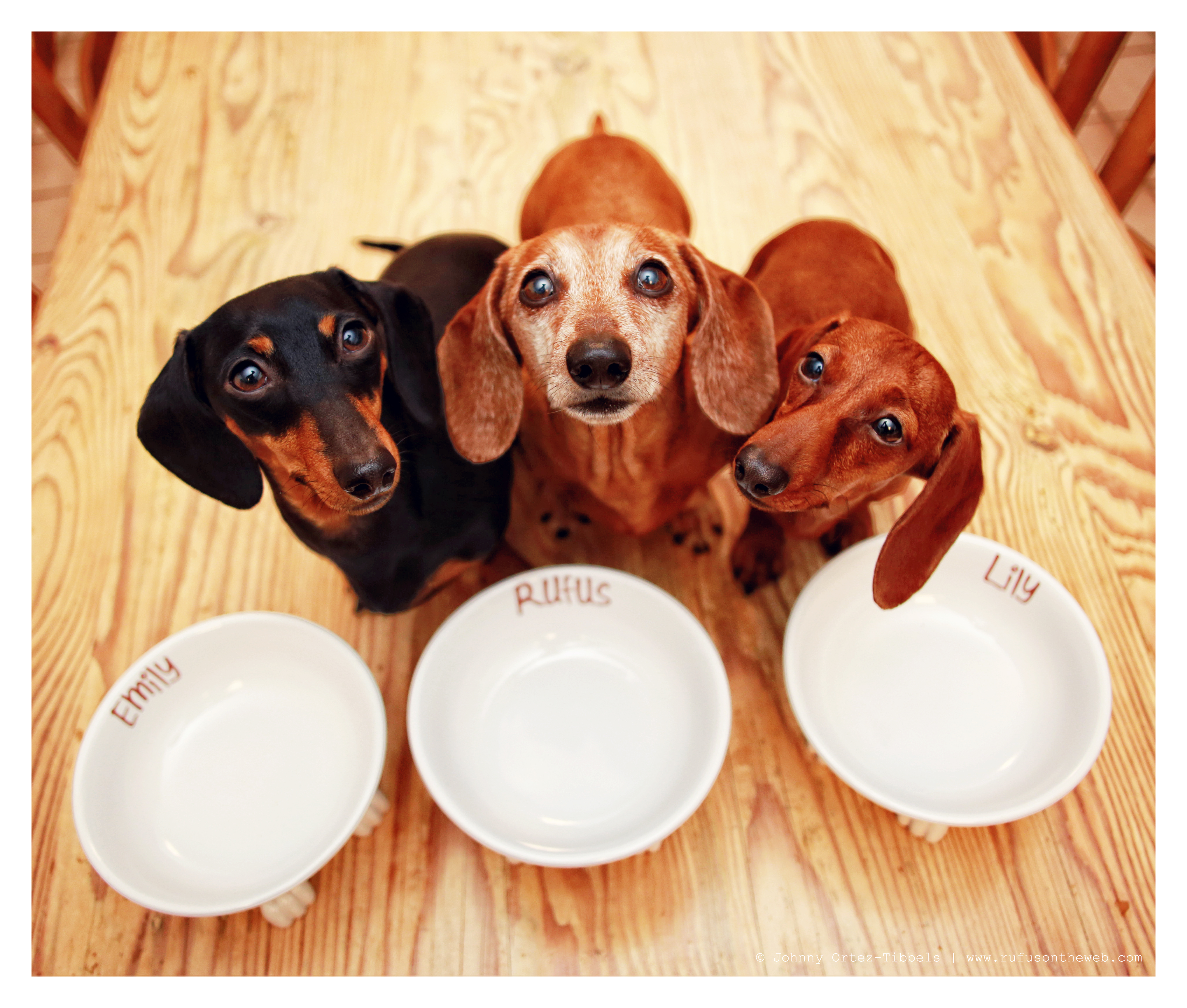 I like taking the mundane and making it more interesting or entertaining. I assert life is best enjoyed when care is given to the details. Mealtime with dachshunds is certainly amusing on its own – as our chow hounds typically race at lightening speed to devour their kibble. Dinning for dachshunds is such a central part of their lives that one might as well make it special with personalize bowls so that’s exactly what I did. To get yours visit our friend Dylan Kendall.