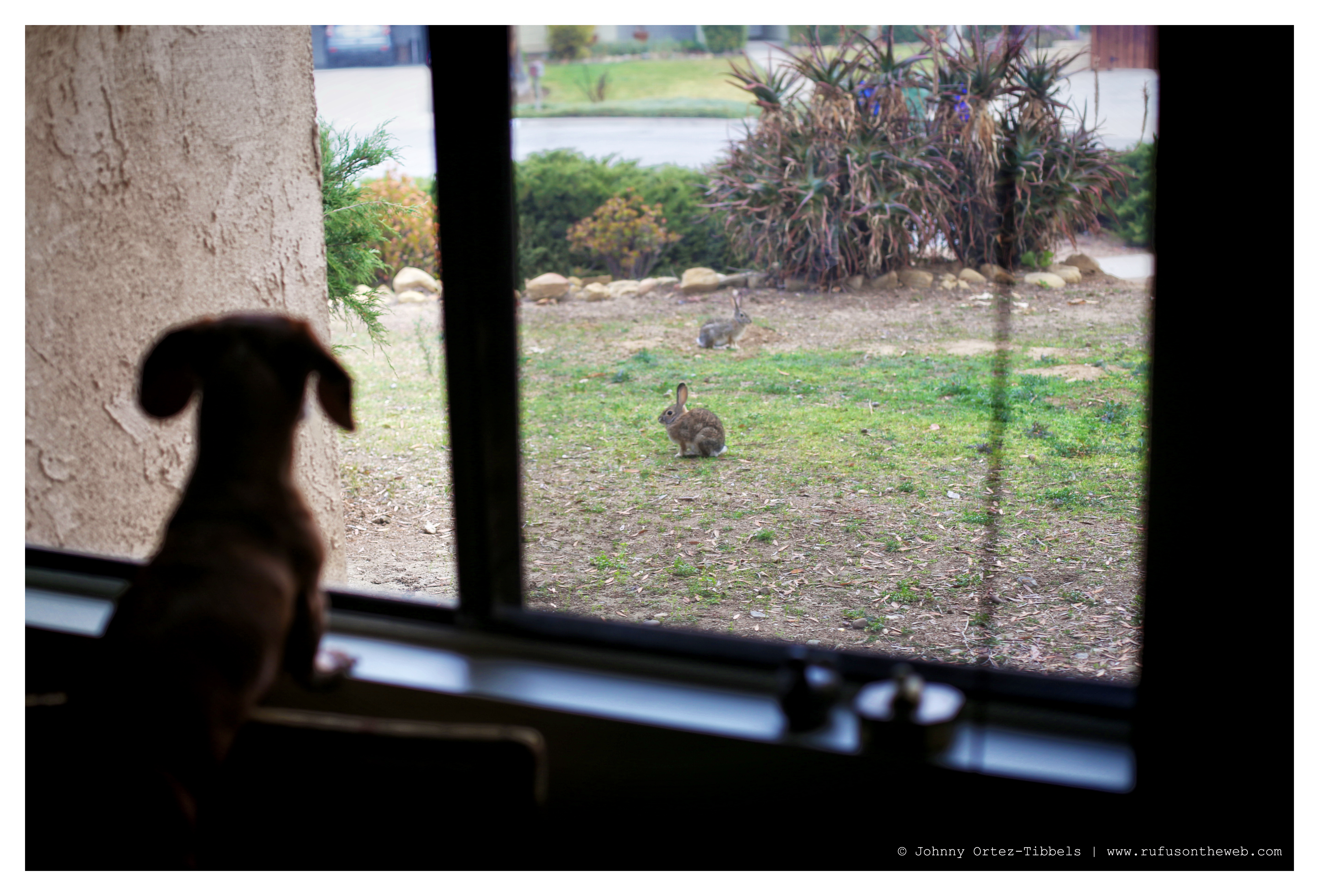 The early dachshund get his rabbit, or at least gets to see it. Earlier today with the early morning fog still lingering Rufus was fixed on two invading rabbits. I can only imagine what was racing through my little hunter’s mind, but each time the rabbits would run left Rufus would run to the front door (which happens to be left of the window). Have a good day dachshund friends.