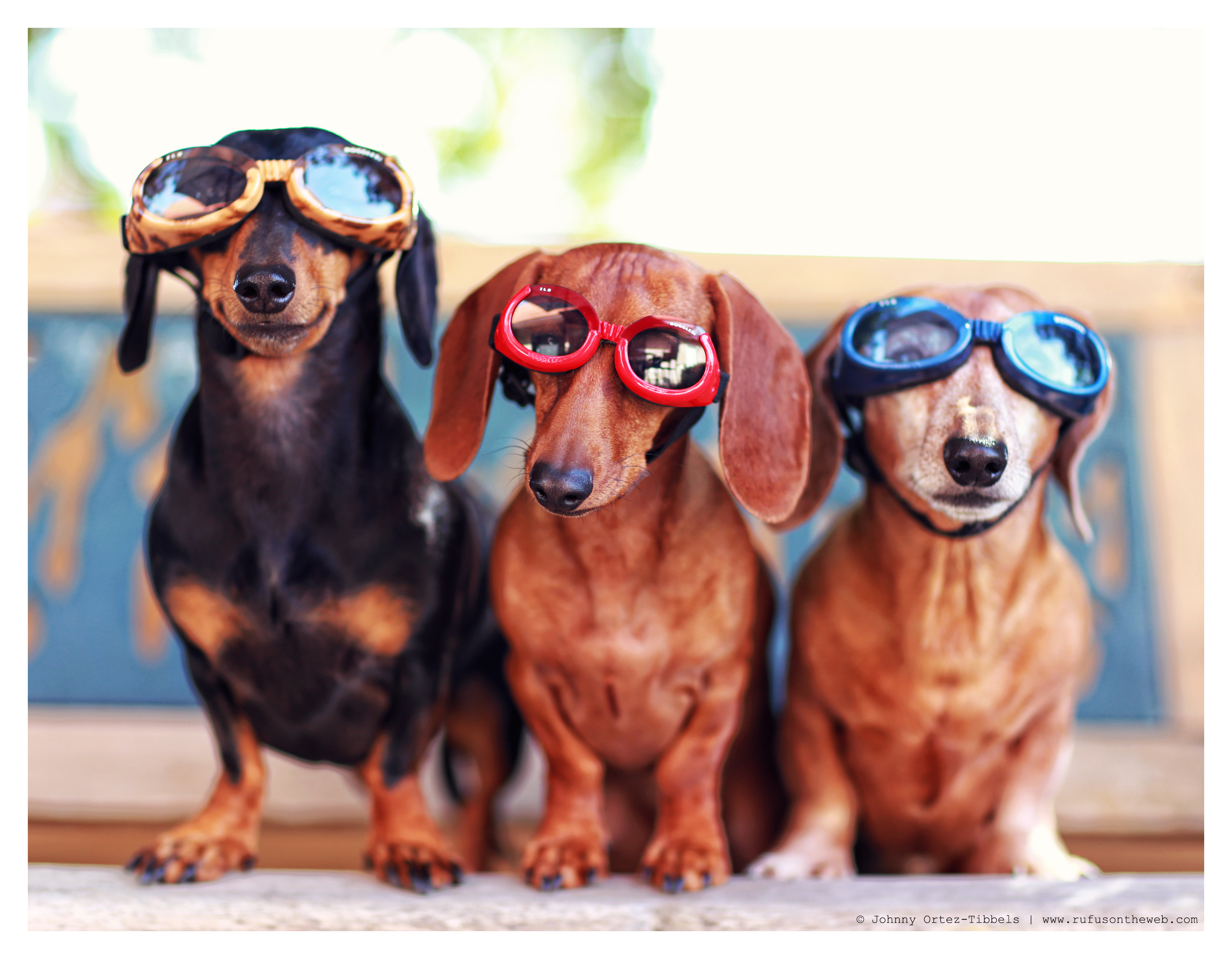 Having more fun with Doggles. I went ahead and picked up a third pair special for Lily at our local favorite pet boutique: Wise Tails. I don’t know if she’ll be able to still wear them a year from now, but they fit perfectly today and she looks so darn cute in them (I think). All three of them together crack me up. They kind of look like fighter pilots or an Olympic diving team awaiting their final scores. What do you think dachshund friends?!?