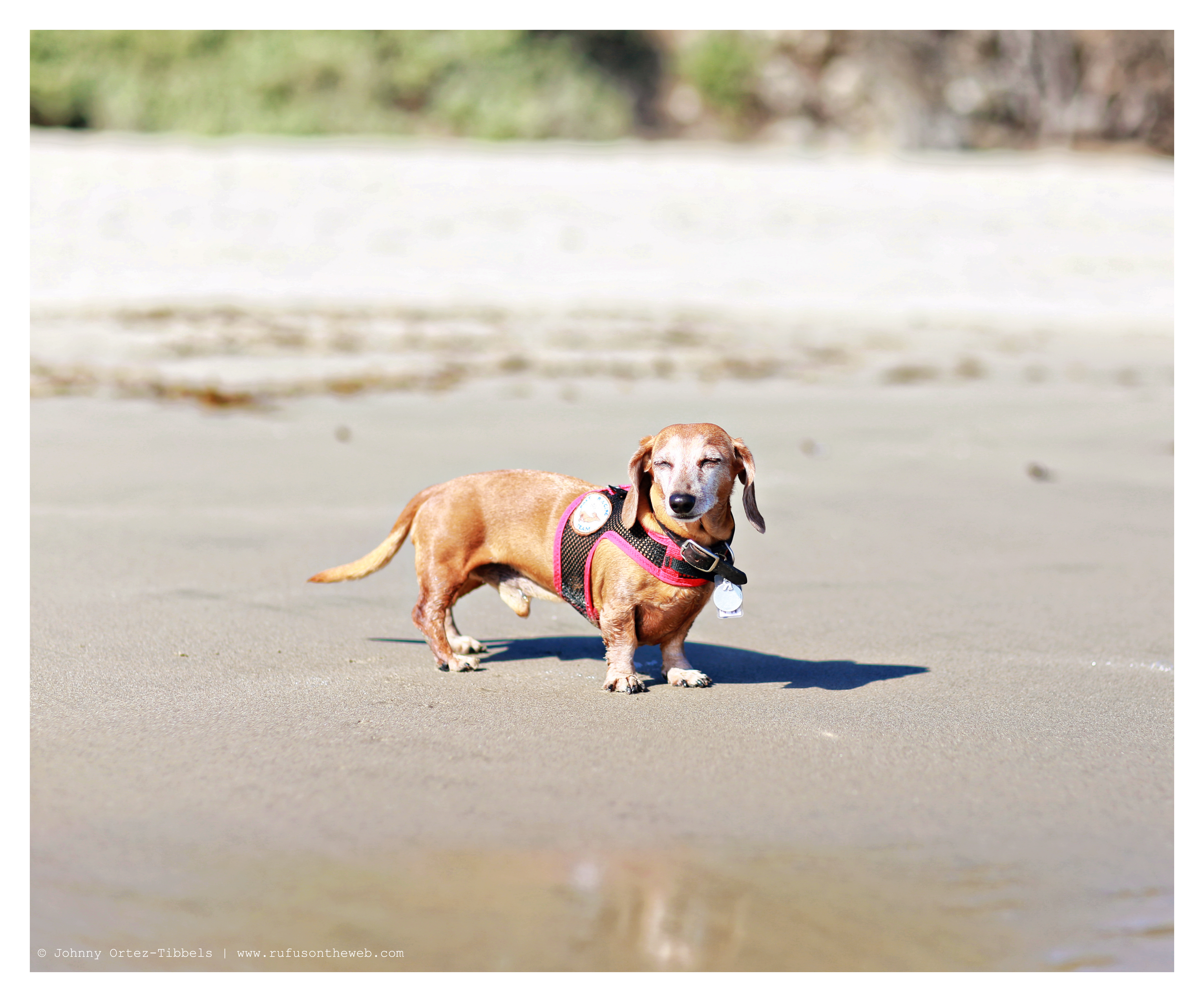 I love these red darling dachshunds. Don’t you?! Rufus at the beach basking in the sun and Lily at the dog park carefully monitoring her surroundings. Have a wonderful day dachshund friends.