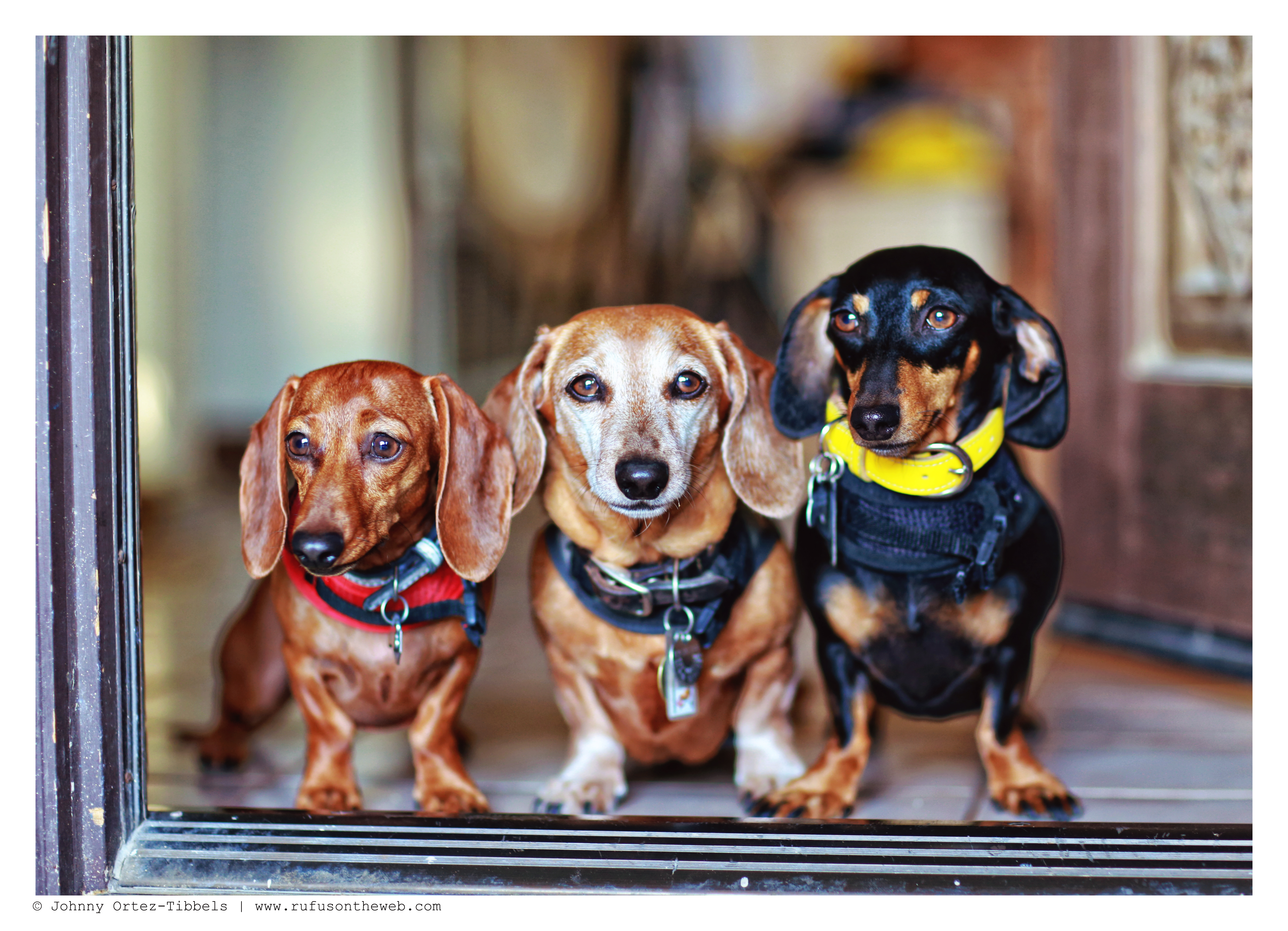 Rufus, Emily and Lily wish all of our dachshund friends well. Be happy doxie people. This was the scene today as we prepared to go for an adventure. Everyone patiently waiting at the front door with their hug-a-dog harnesses and collars. They were alert and ready for the command to go to the car.