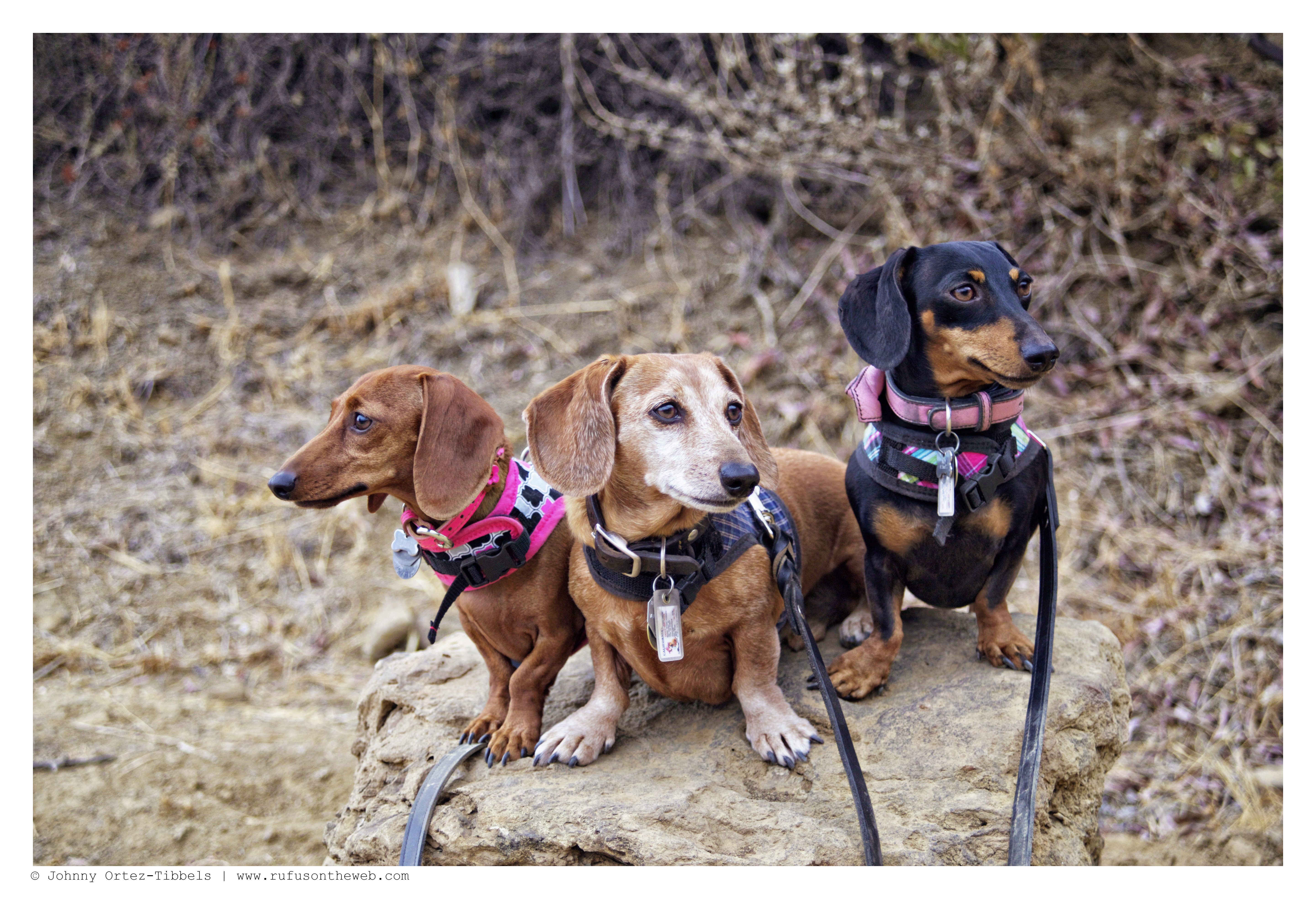 It’s one of your favorite doxie trios: Rufus, Emily and Lily. Today it was a nice cool 73 degrees and it finally felt like fall in Southern California. We celebrated the occasion with a 2 and a half mile hike up the mountain. From ours to yours, have a wonderful day dachshund friends.