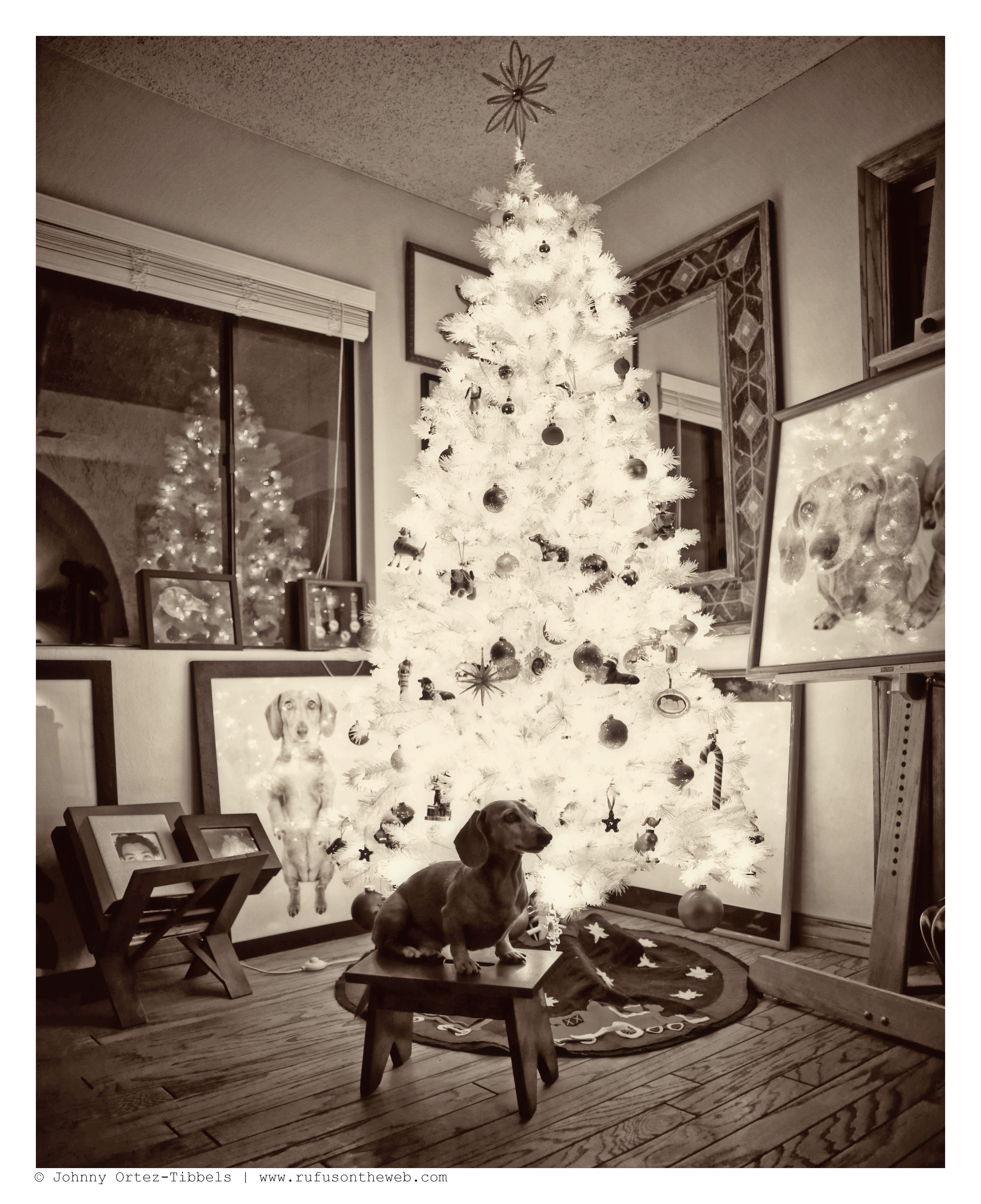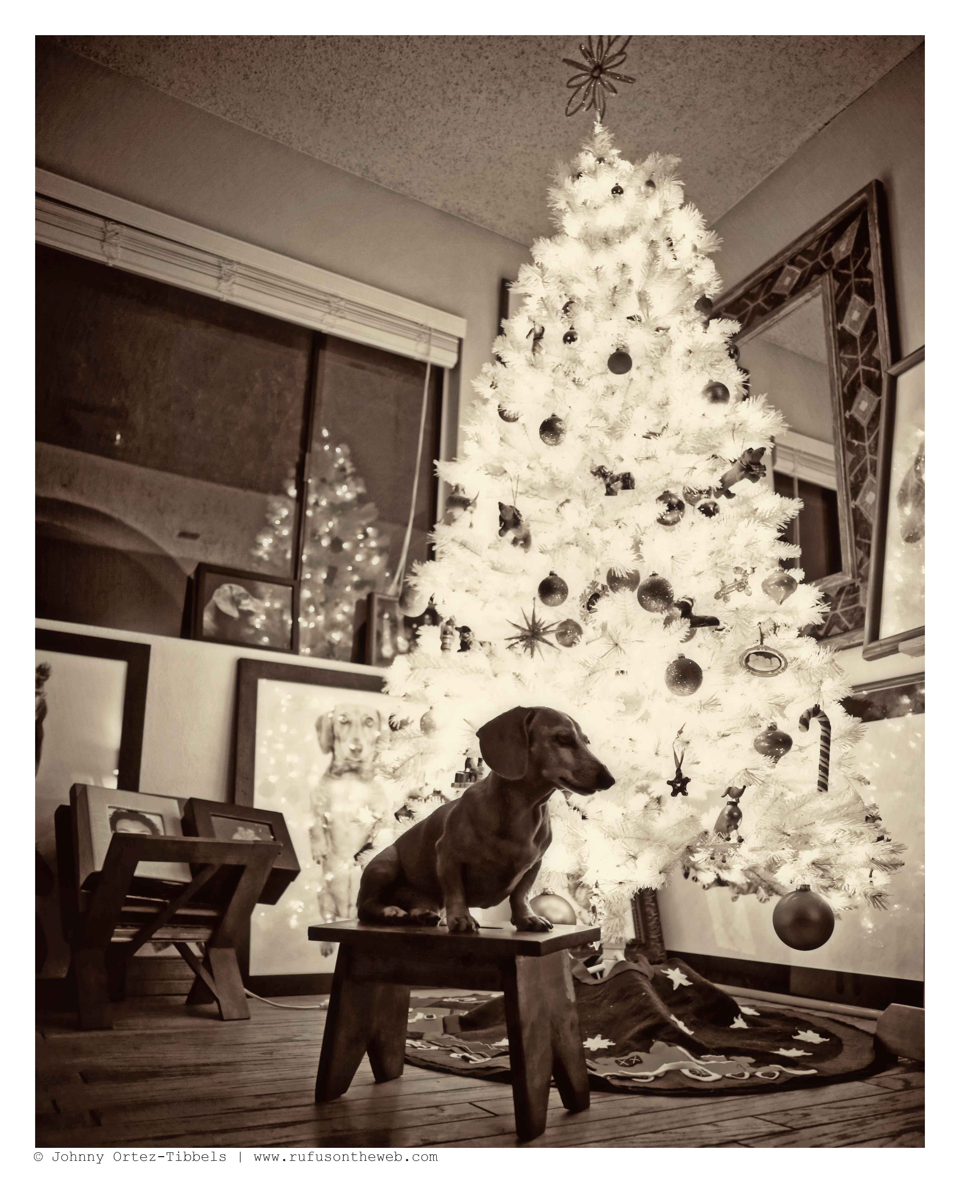 Hello dachshund friends. Today’s featured photos are some outtakes from our ongoing holiday shoot. Working with a white flocked tree comes with its challenges, but it always fun to play and see the varied end results – especially with the always regal doxie model Rufus. What do you think friends?! More to follow for sure in the days ahead so stay tuned.