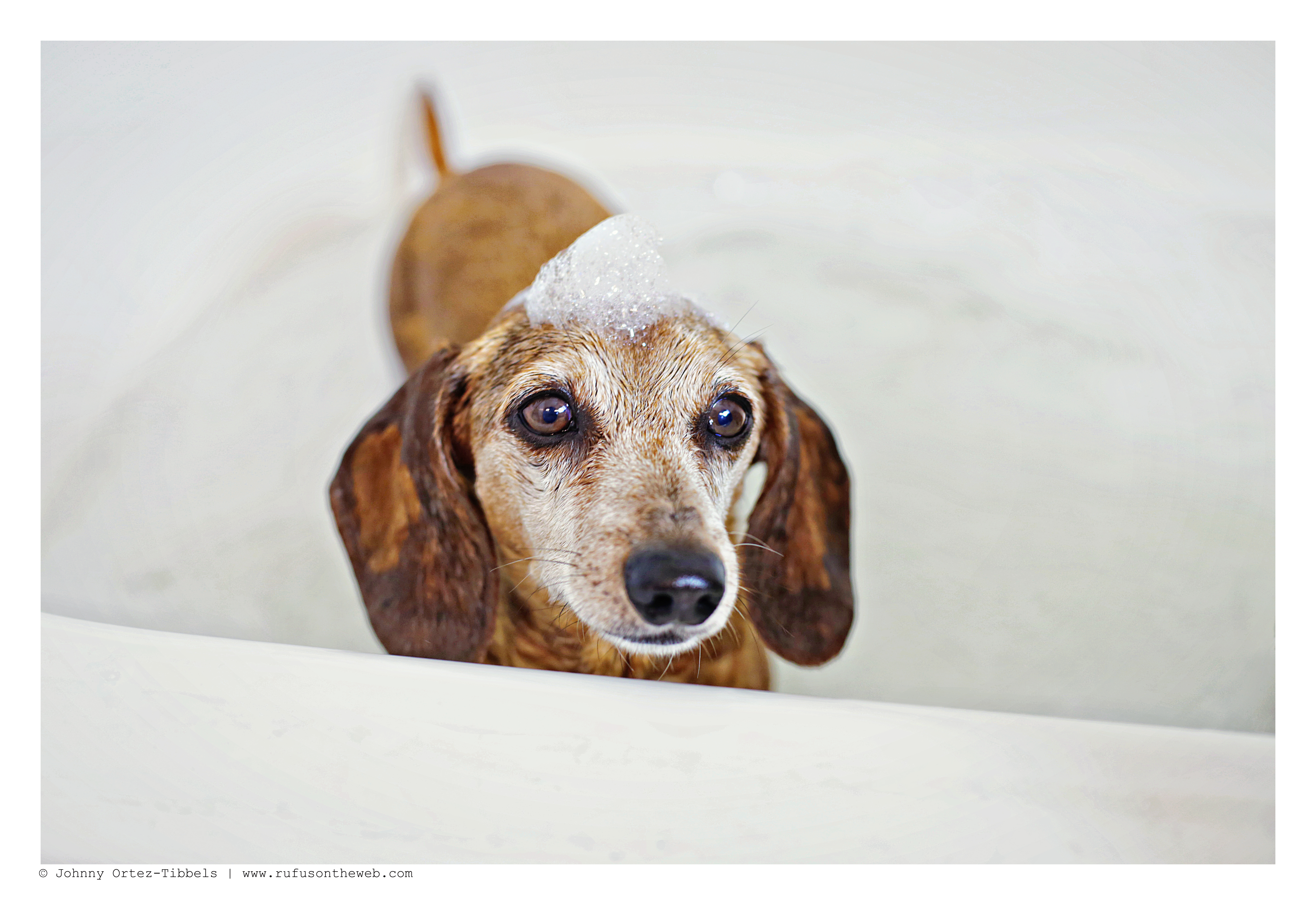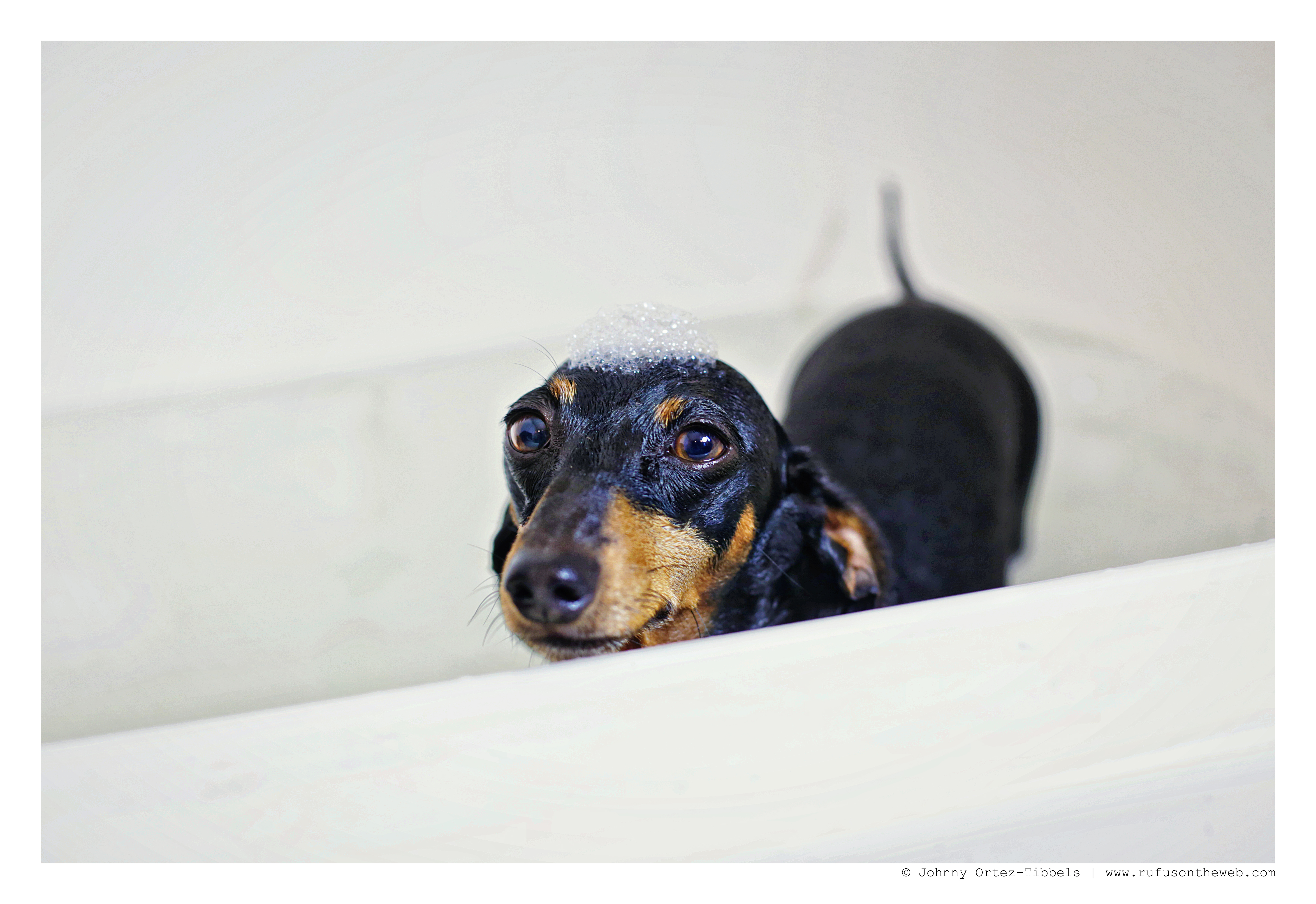 A clean wiener dog makes for a happy human. So which do you and yours prefer, sink or bathtub?! We use both, depending on my mood. The sink is probably easier on my back, but I think it’s more fun to put all three in the tub together. When I use the sink, it’s one at a time.