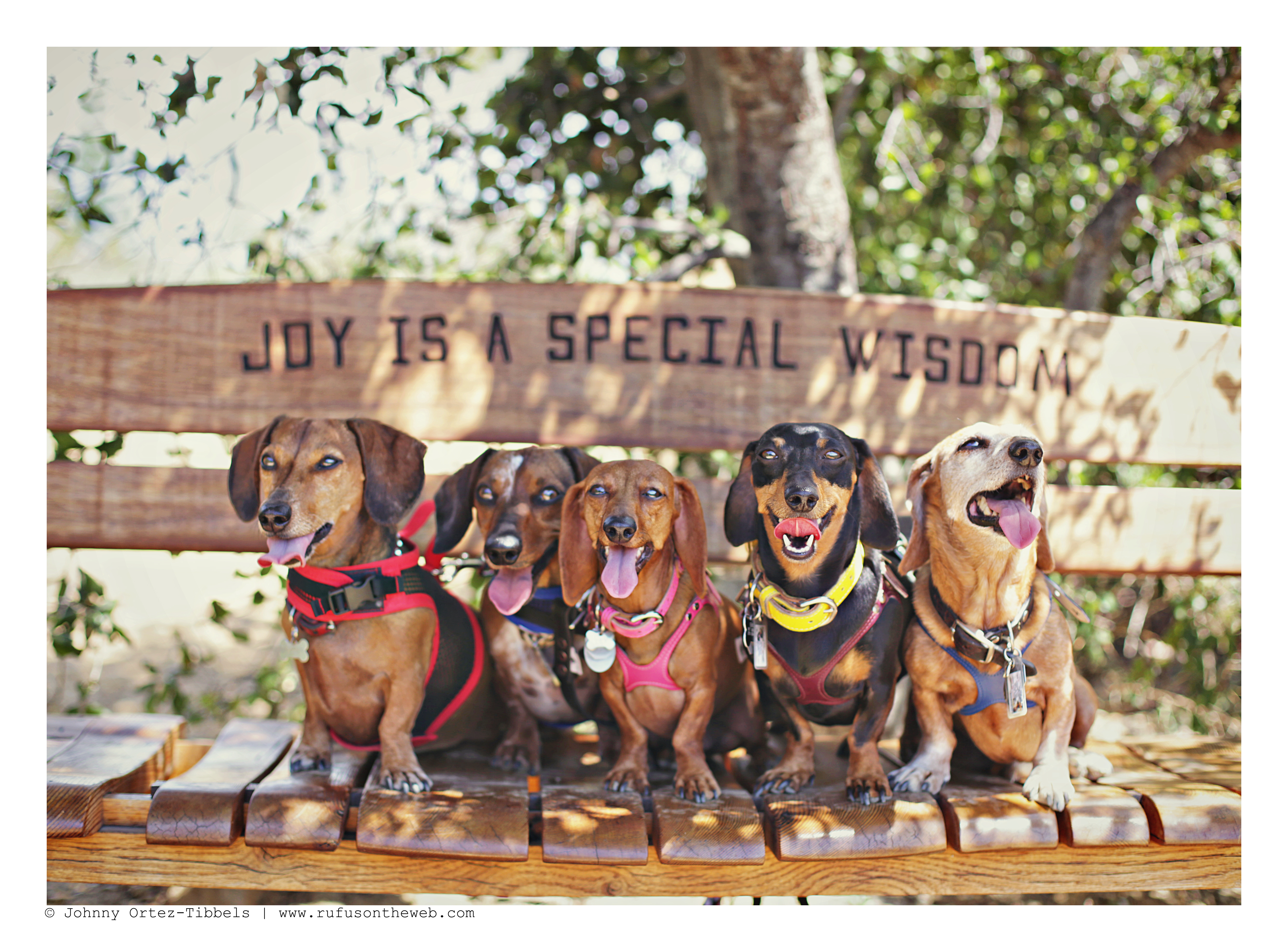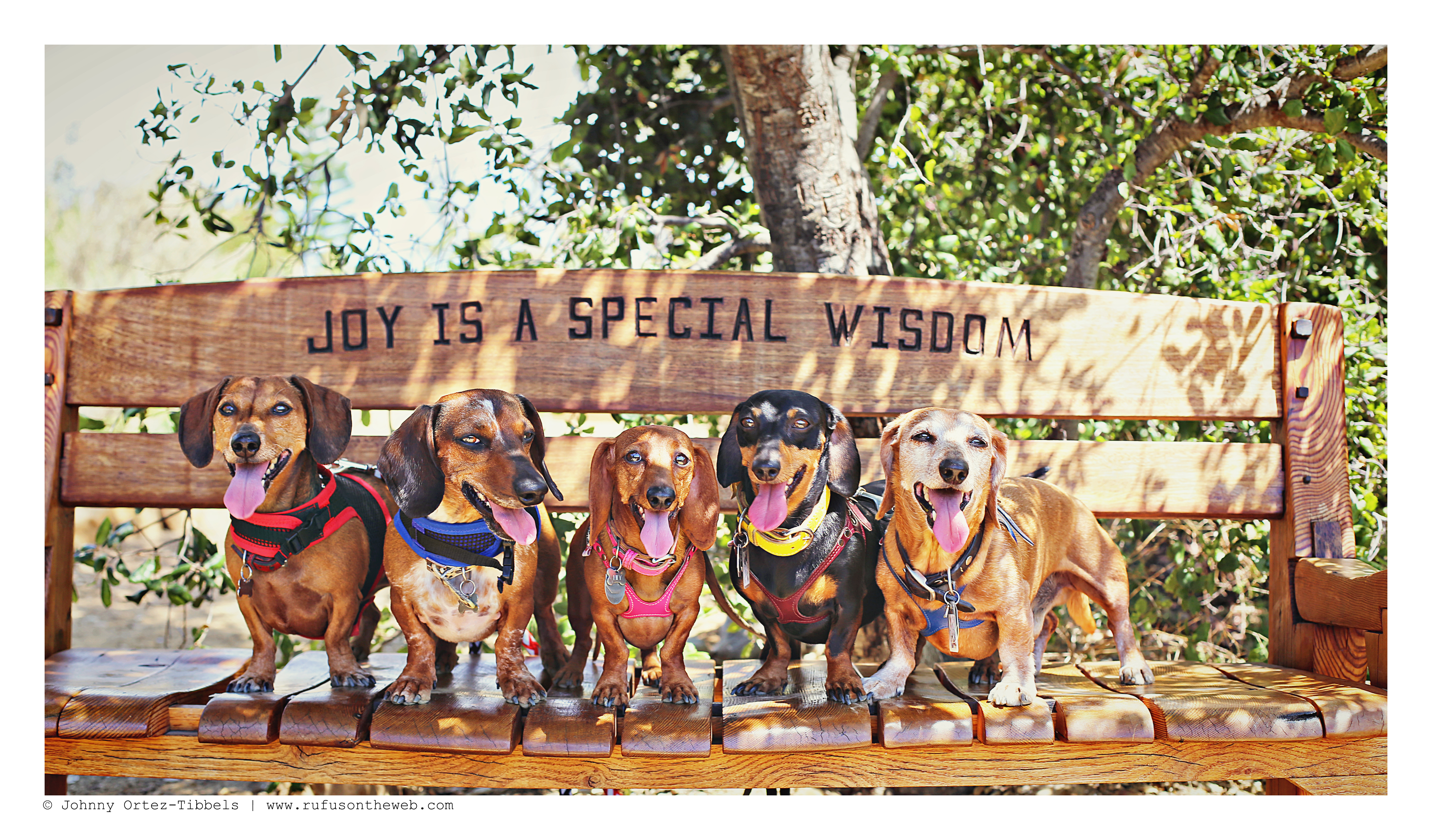 There’s this bench beautifully situated at Meditation Mount in Ojai with these words on it: “Joy is a Special Wisdom.” When you add 5 gorgeous darling dachshunds to it, the words really ring true for me. What do you think friends?! The tongues are all out because it has been HOT in Southern California lately.