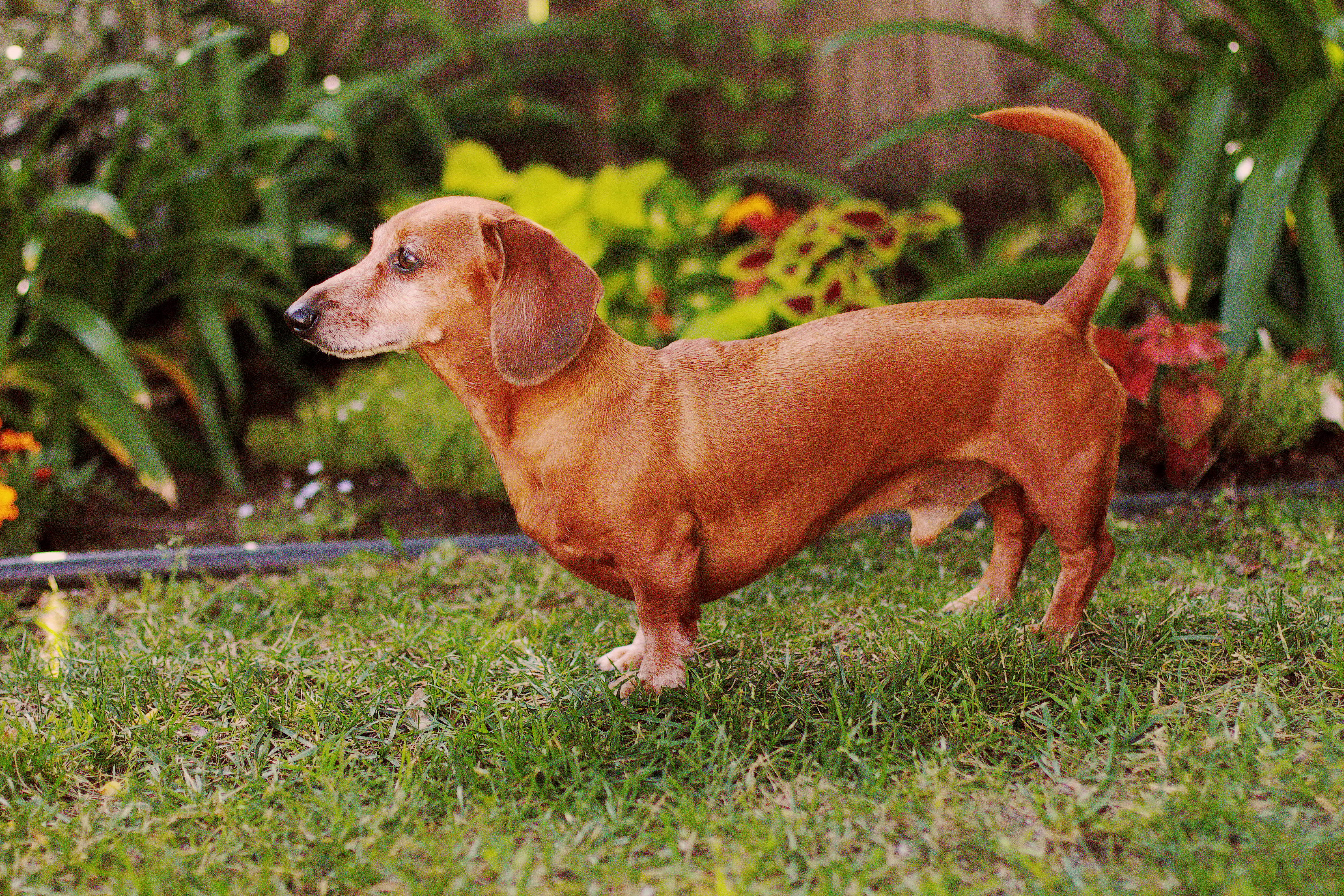 Rufus had a rough 24 hours and we’re hoping Wiener Dog Wednesday brings a better day for us both. After a night of vomiting and a morning of additional vomiting and diarrhea our vet and I speculate Rufus ate something (probably outside) that didn’t agree with him. We gave him a fluid pack and two injections (Cerenia & Centrine) for the vomiting and diarrhea. Since Tuesday afternoon he has been resting steadily. Seeing a doxie so still is always disheartening because we all know that’s not their normal nature. Today’s post pays tributes to Rufus from better days, and we hope for their return very soon.